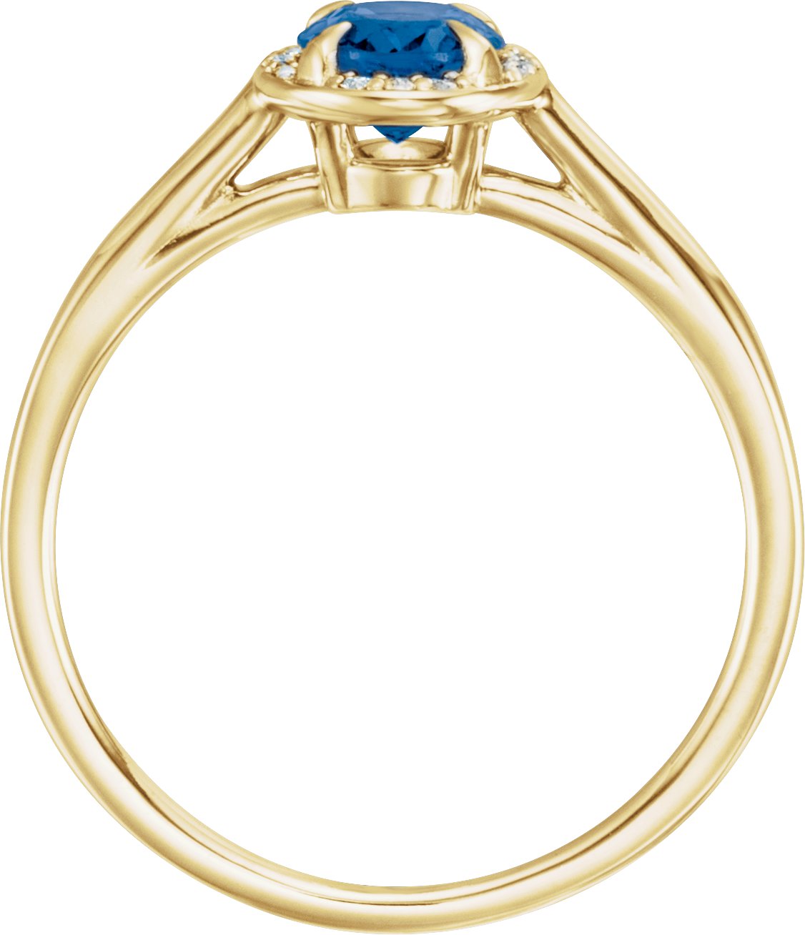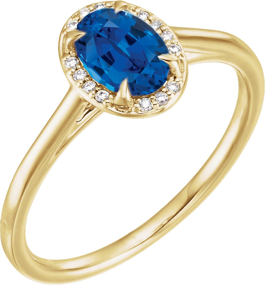 14K Yellow 7x5 mm Oval Chatham Lab Created Blue Sapphire & .04 CTW Diamond Ring