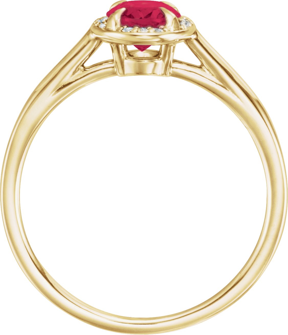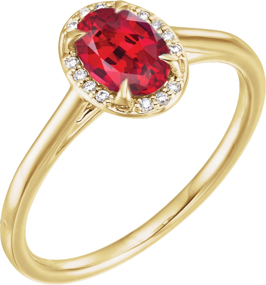 14K Yellow 7x5 mm Oval Chatham Lab Created Ruby & .04 CTW Diamond Ring