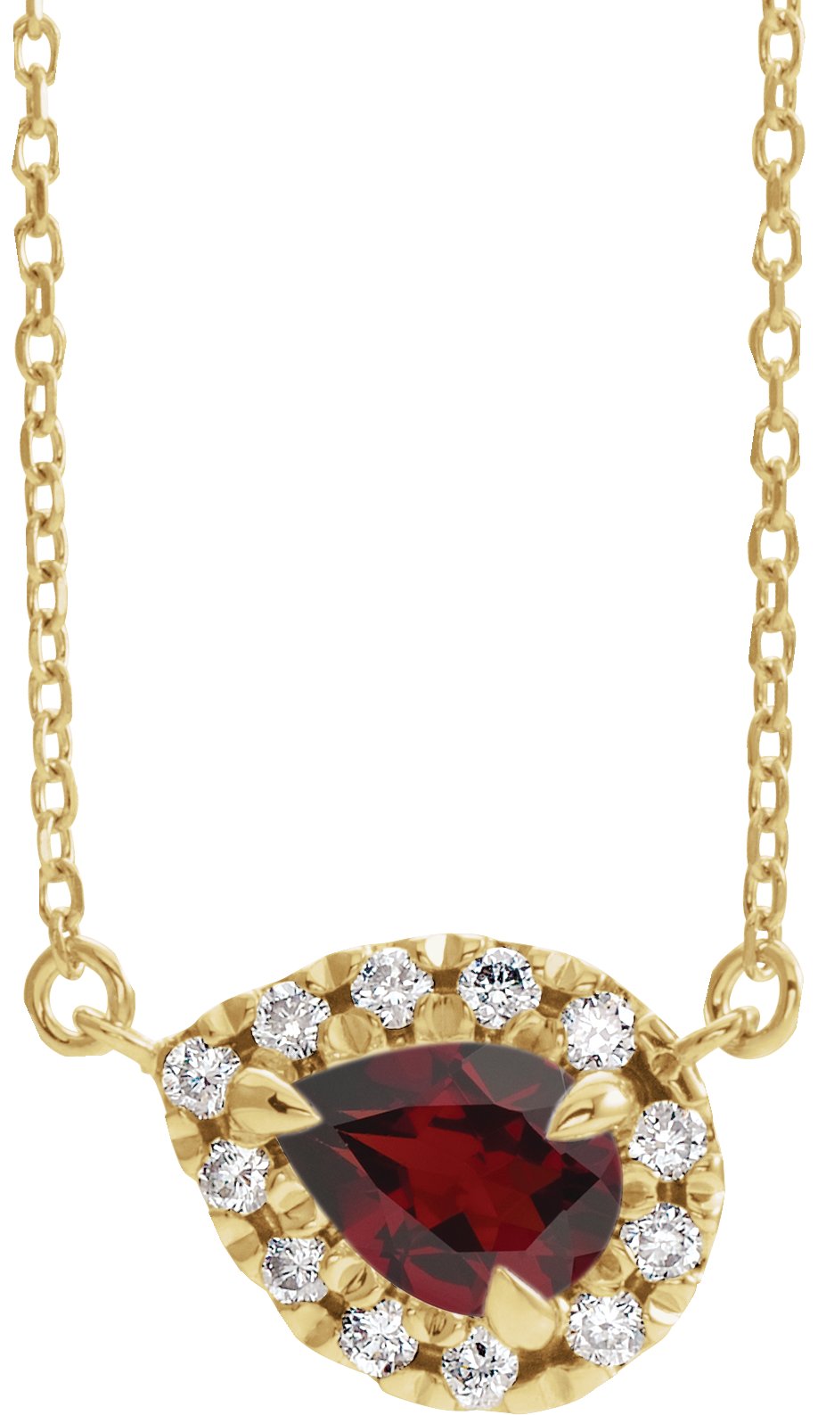 14K Yellow 7x5 mm Pear Mozambique Garnet & 1/6 CTW Diamond 16" Necklace Ref. 16213394