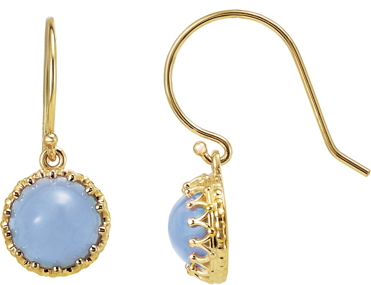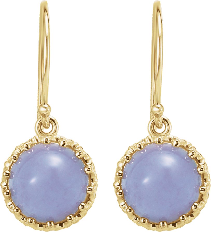 14K Yellow 8 mm Blue Chalcedony Dangle Earrings