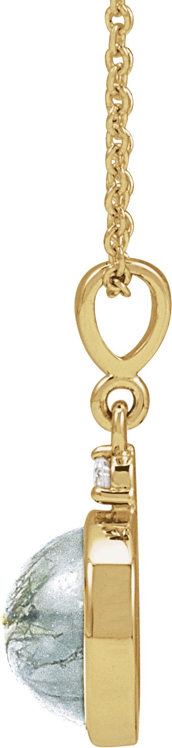 14K Yellow 8 mm Natural Moss Agate & .03 CTW Natural Diamond 16-18" Necklace