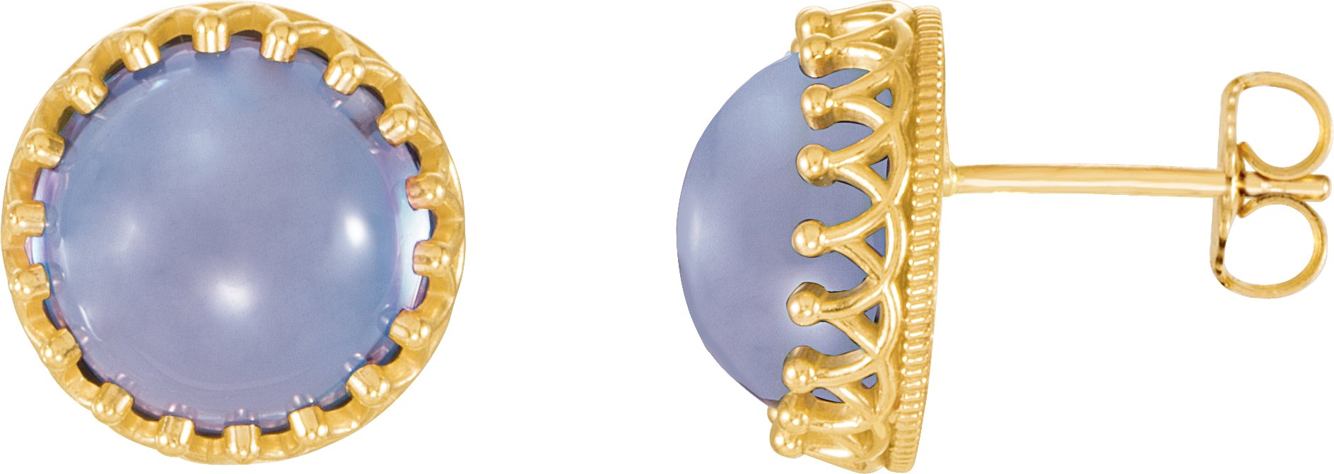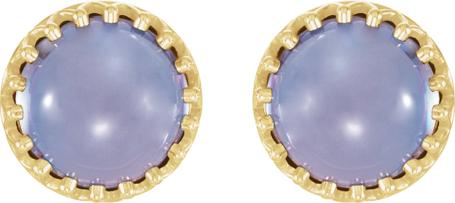 14K Yellow 8 mm Round Blue Chalcedony Earrings