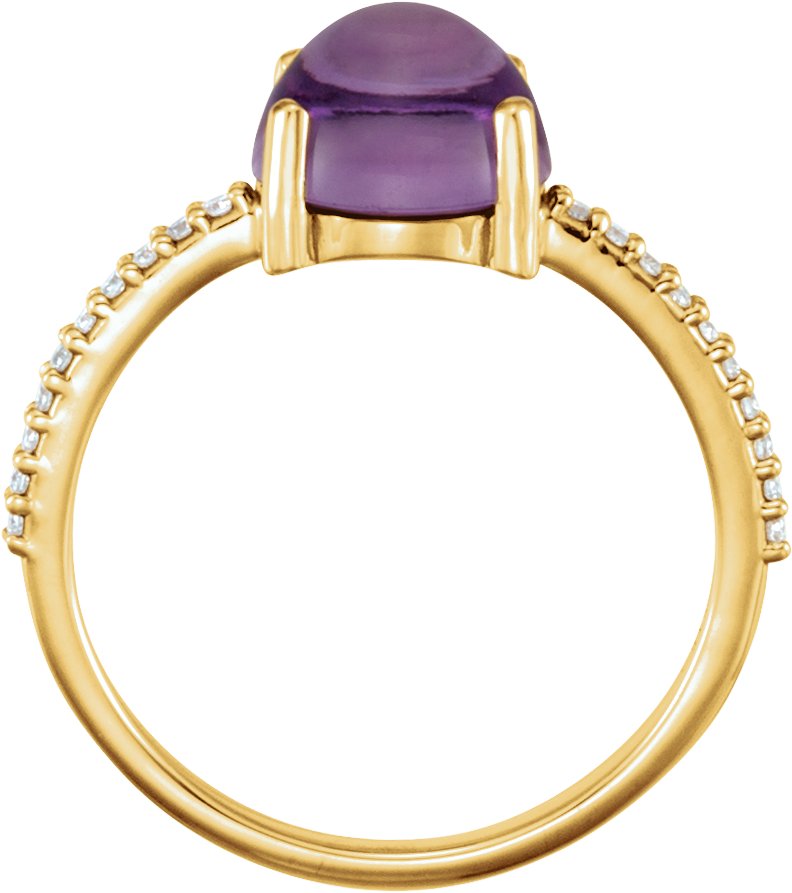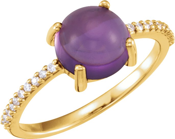 14K Yellow 8 mm Round Cabochon Amethyst & 1/10 CTW Diamond Ring