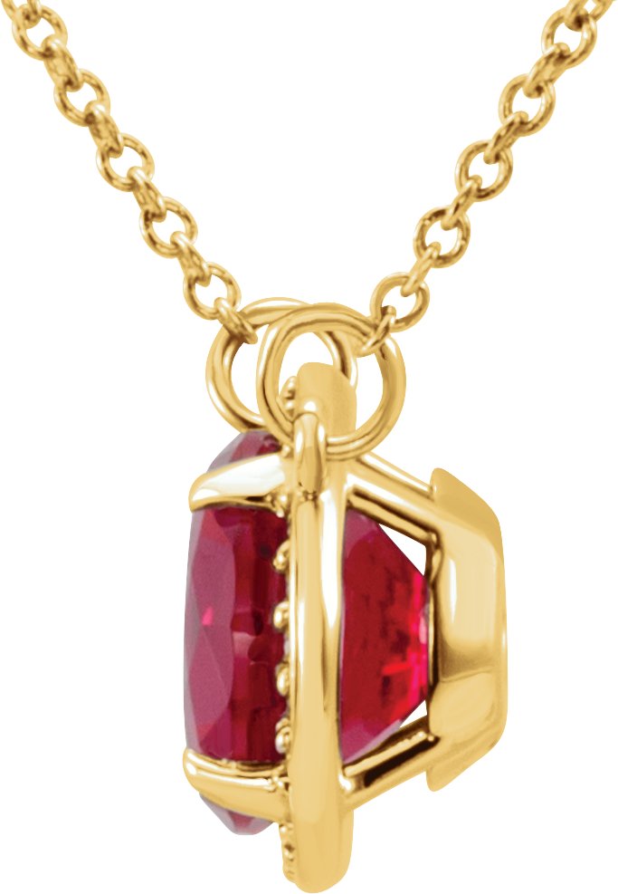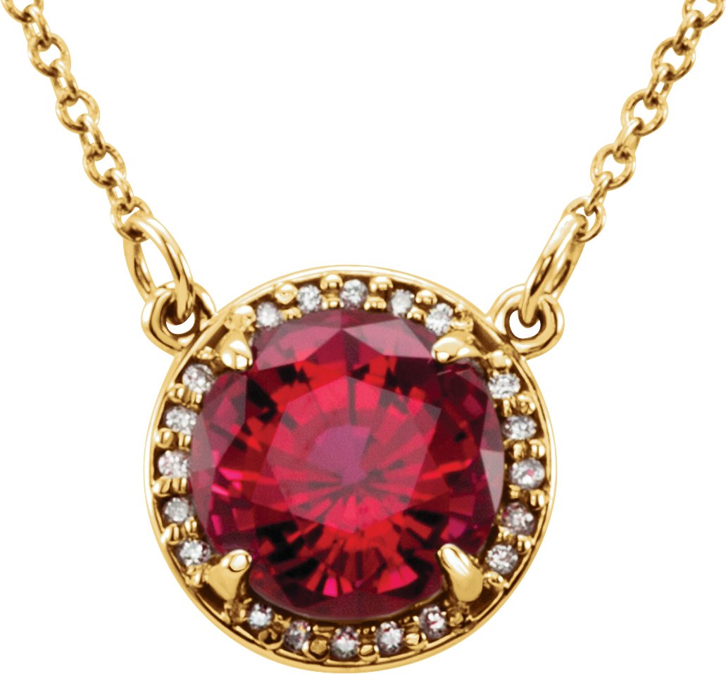 14K Yellow 8 mm Round Chatham Created Ruby and .05 CTW Diamond 16 inch Necklace