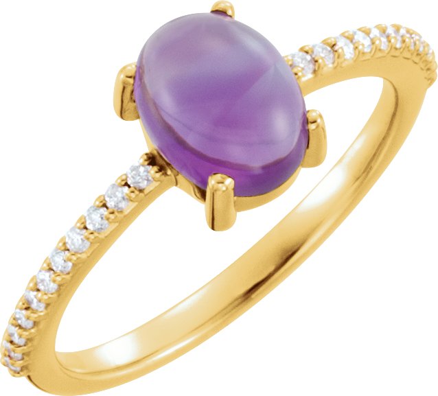 14K Yellow 8x6 mm Oval Cabochon Amethyst & 1/10 CTW Diamond Ring