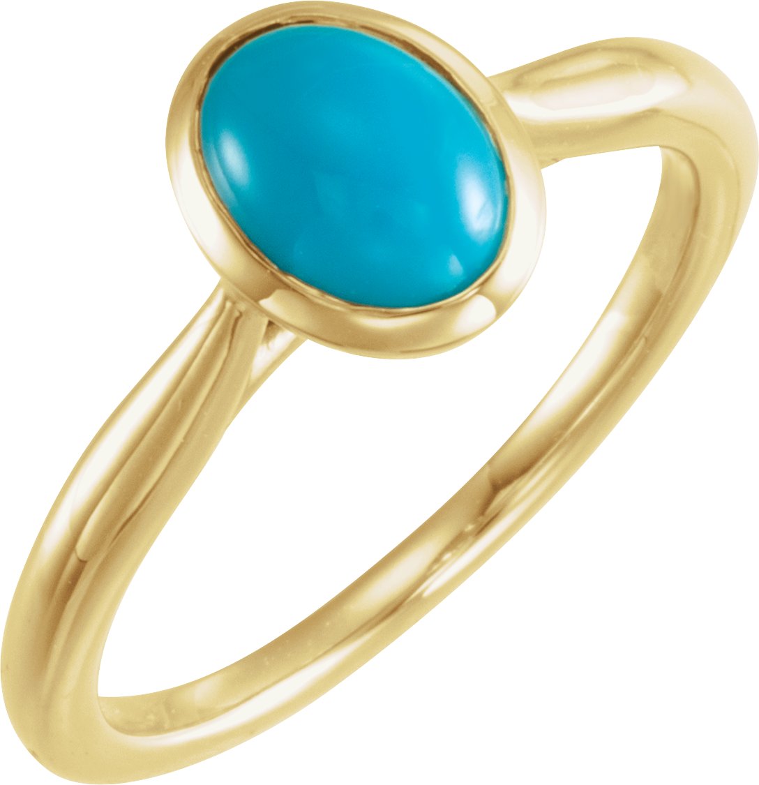 14K Yellow 8x6 mm Oval Cabochon Turquoise Ring