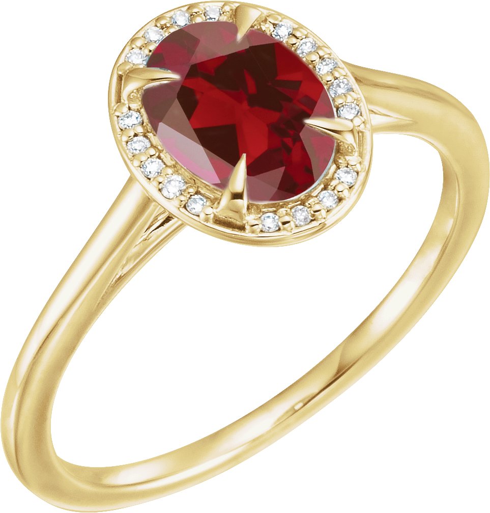 14K Yellow 8x6 mm Oval Mozambique Garnet & .06 CTW Diamond Ring