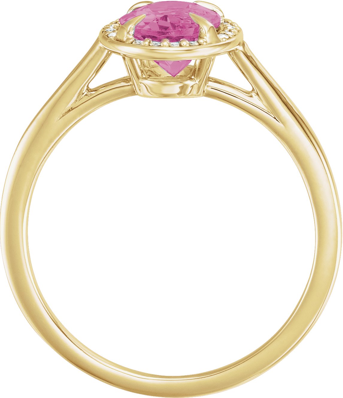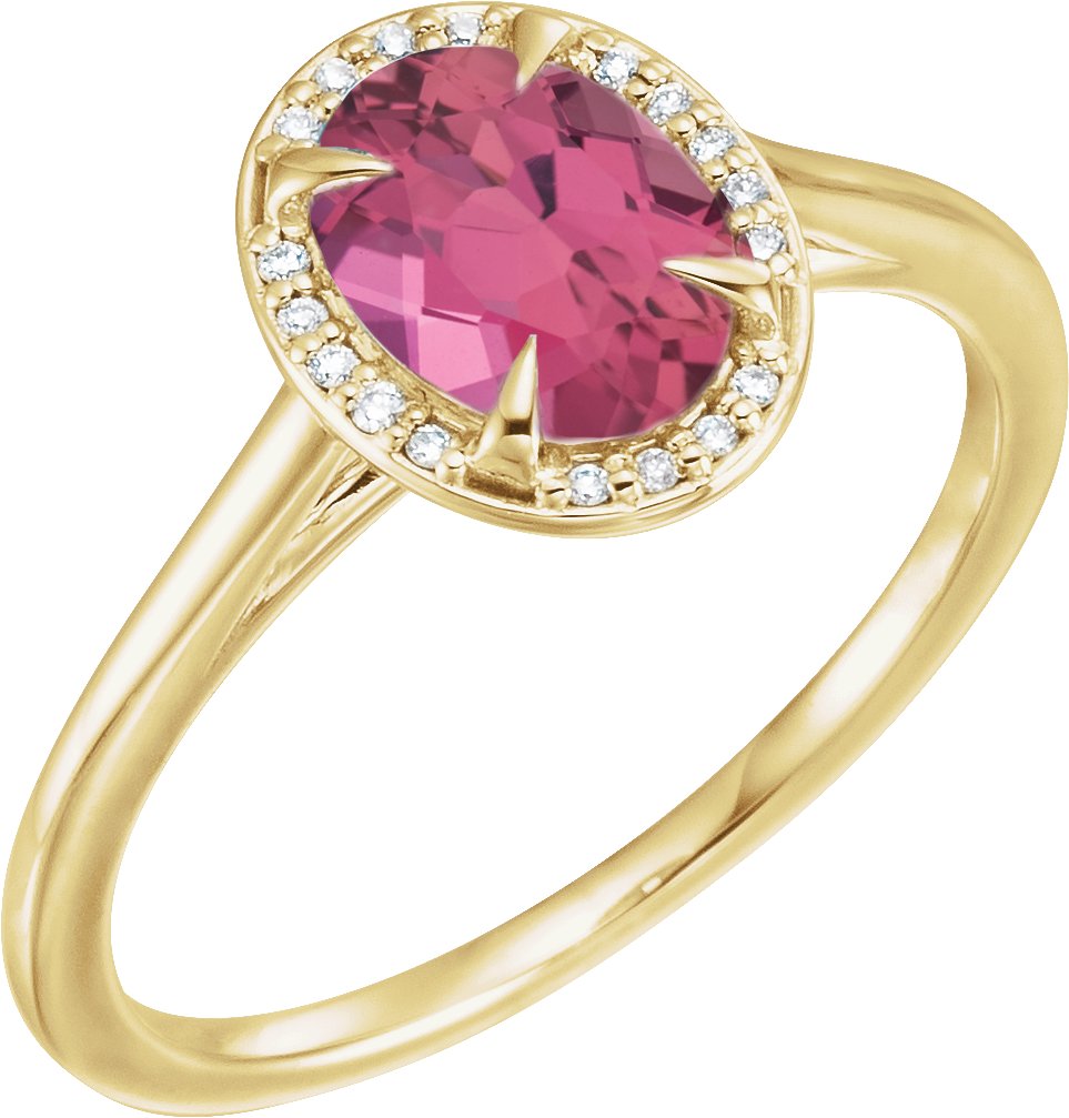 14K Yellow 8x6 mm Oval Pink Tourmaline & .06 CTW Diamond Ring