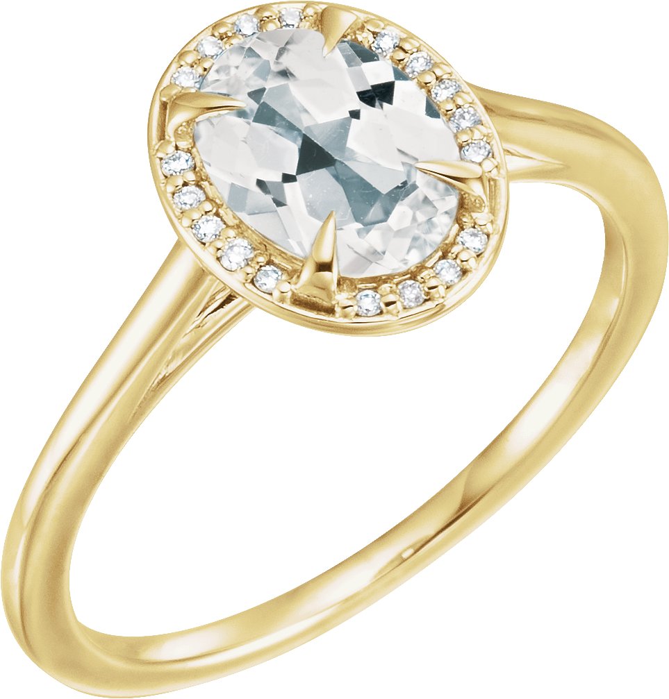 14K Yellow 8x6 mm Oval White Topaz & .06 CTW Diamond Ring