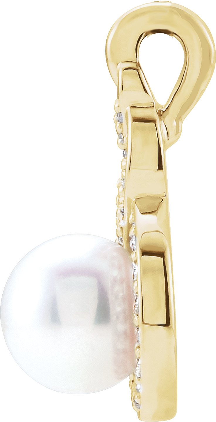 14K Yellow Akoya Cultured Pearl & 1/10 CTW Diamond Pendant