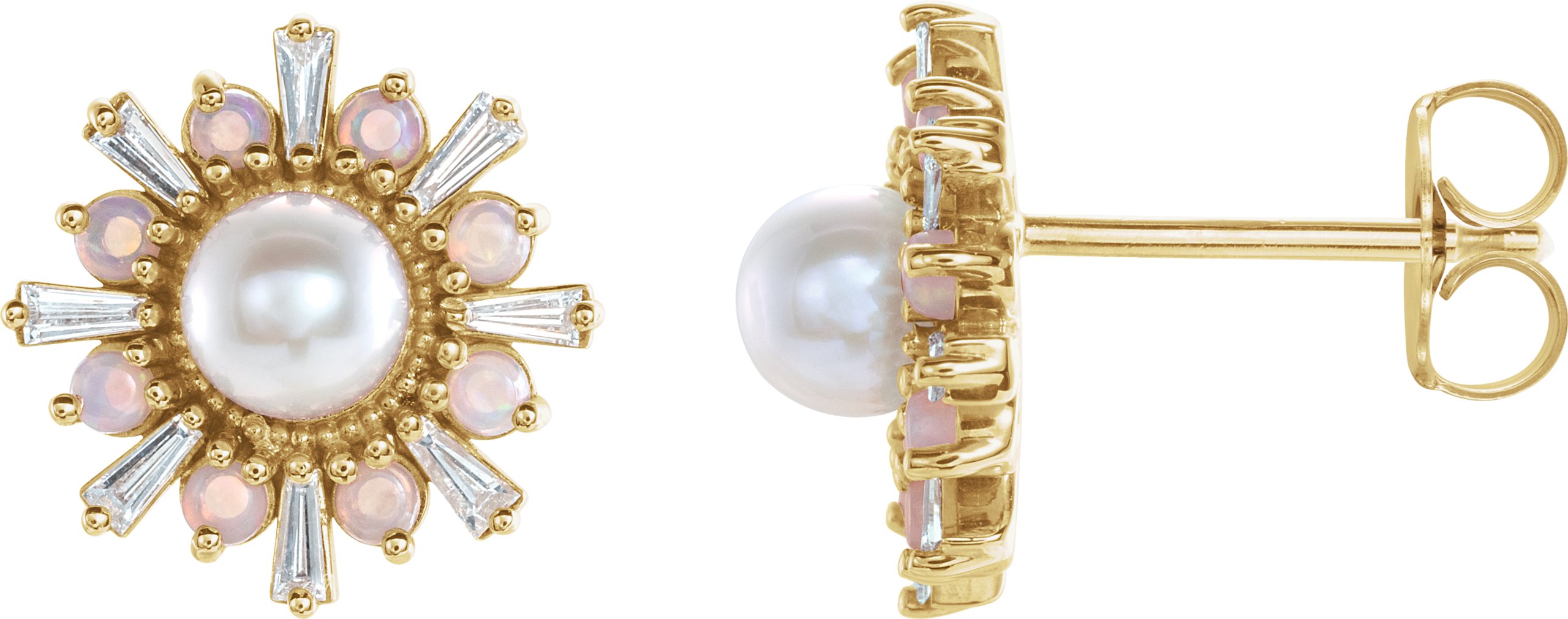 14K Yellow Akoya Pearl, White Opal & 1/6 CTW Diamond Earrings