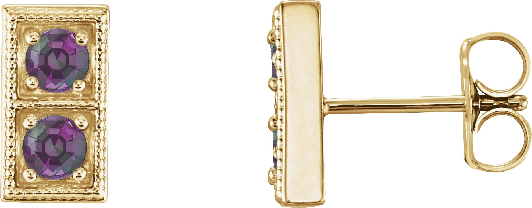 14K Yellow Alexandrite Two Stone Earrings