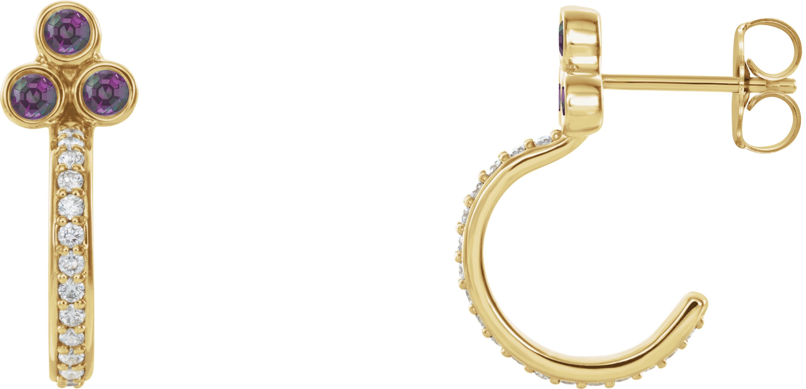 14K Yellow Alexandrite & 1/4 CTW Diamond J Hoop Earrings