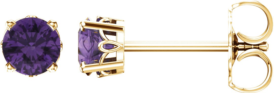 14K Yellow Amethyst 4 Prong Scroll Setting Stud Earrings
