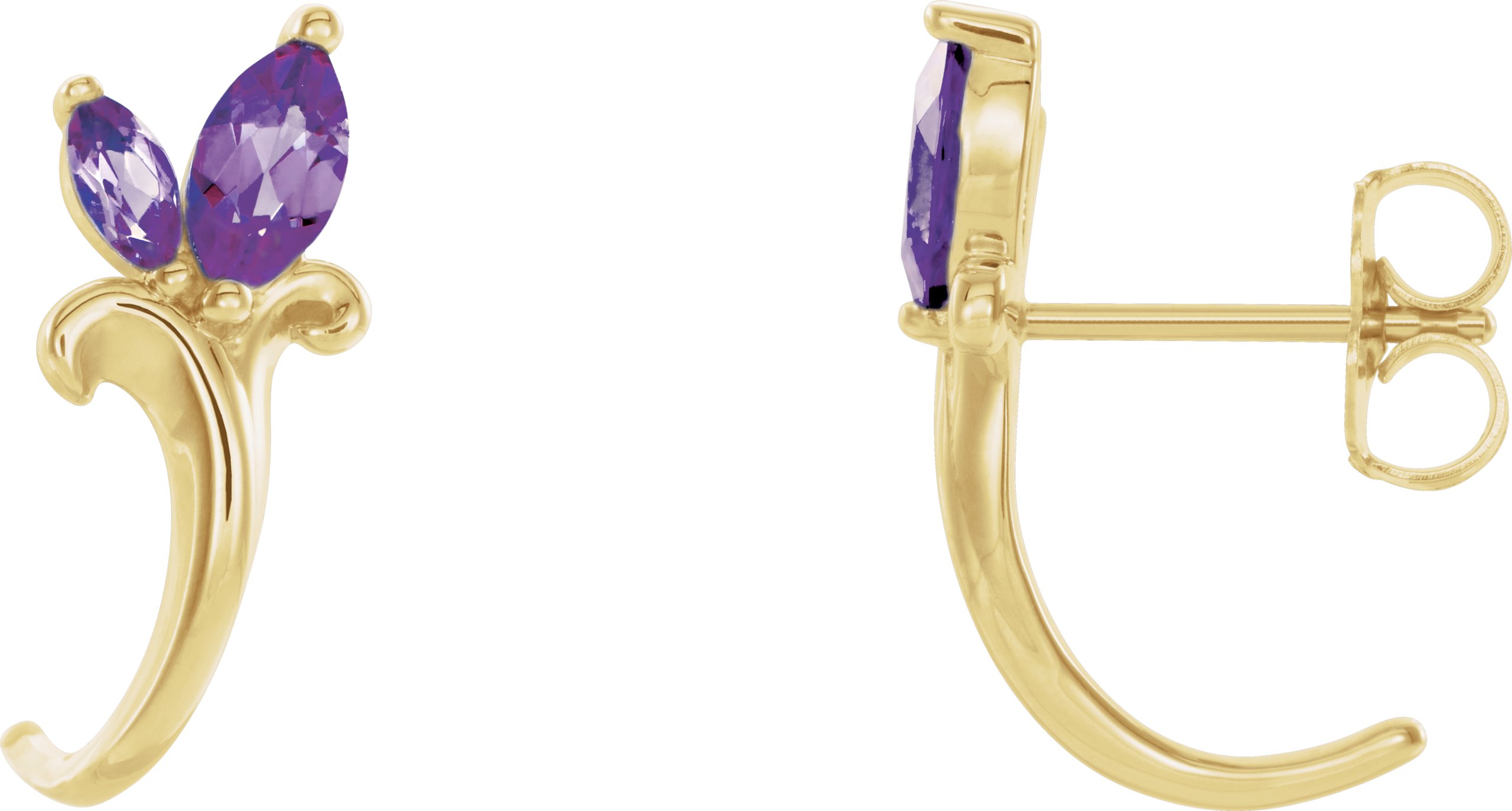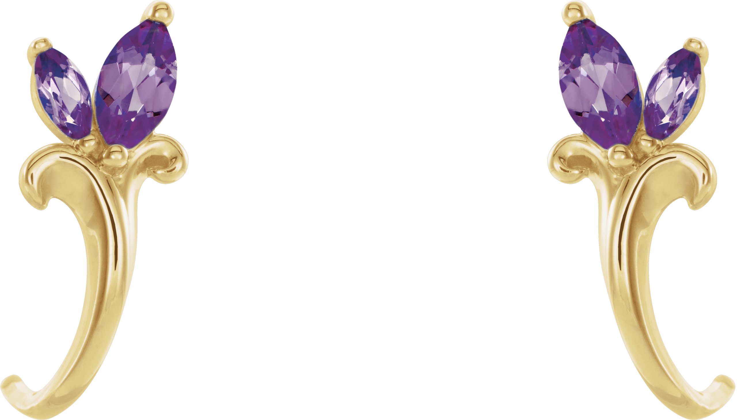14K Yellow Amethyst Floral Inspired J Hoop Earrings