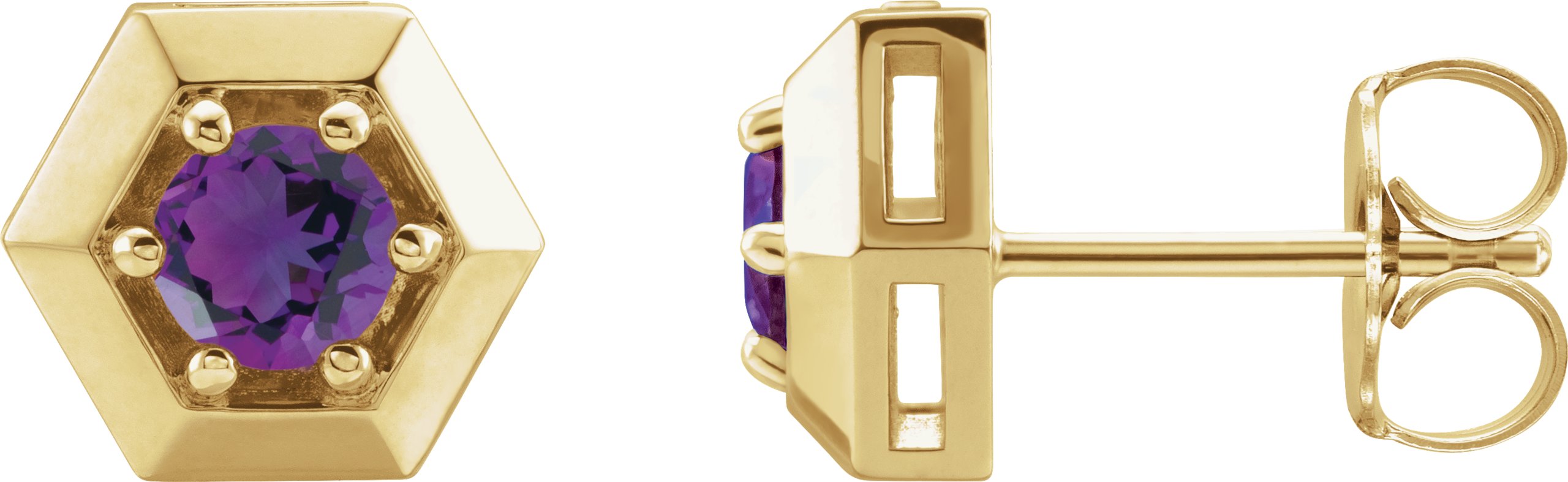Description: Solitaire Hexagon Stud Earrings