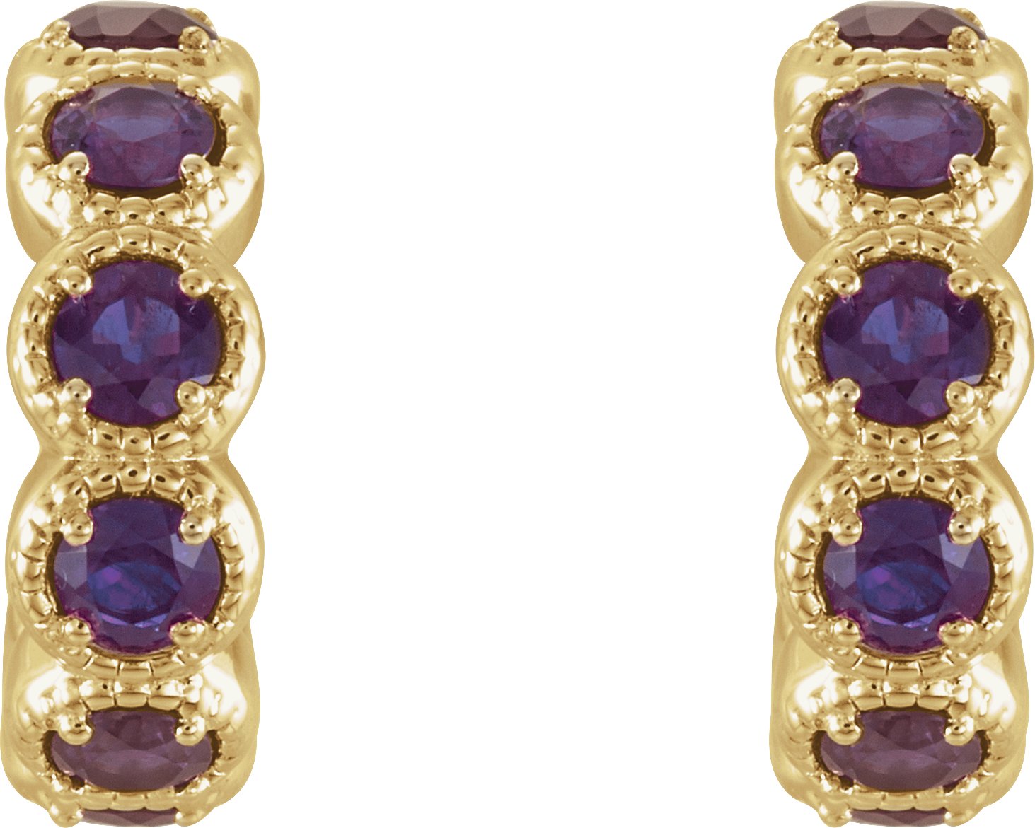 14K Yellow Amethyst Hoop Earrings