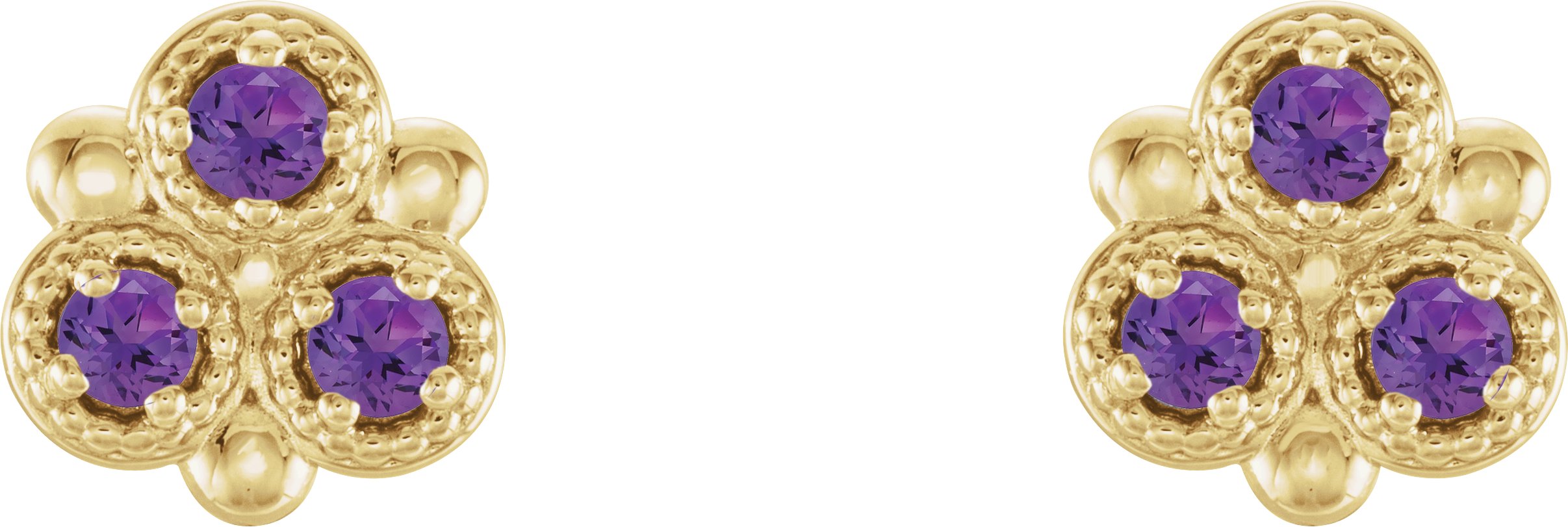 14K Yellow Amethyst Three Stone Earrings