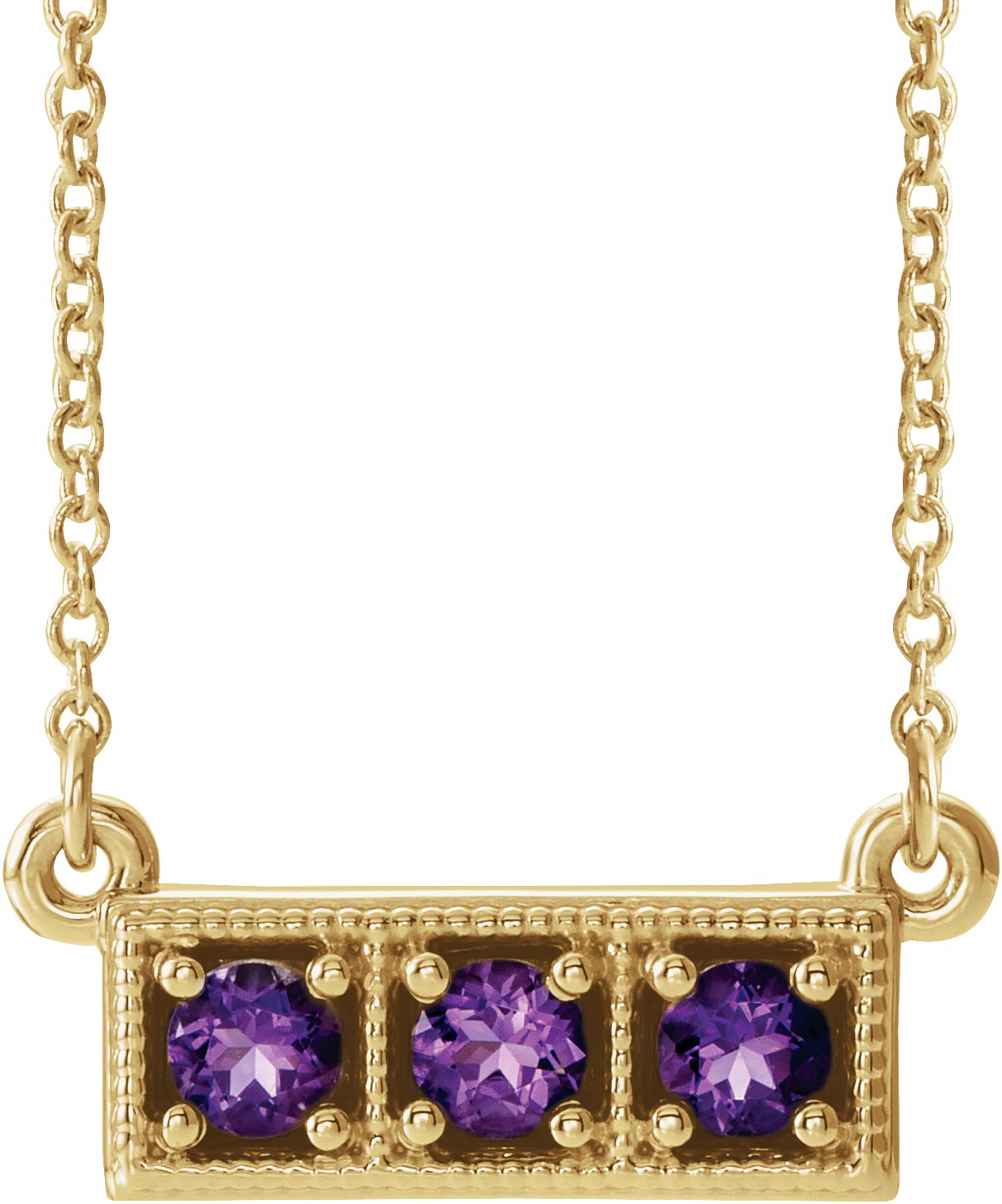 14K Yellow Amethyst Three Stone Granulated Bar 16 18" Necklace Ref. 14204216