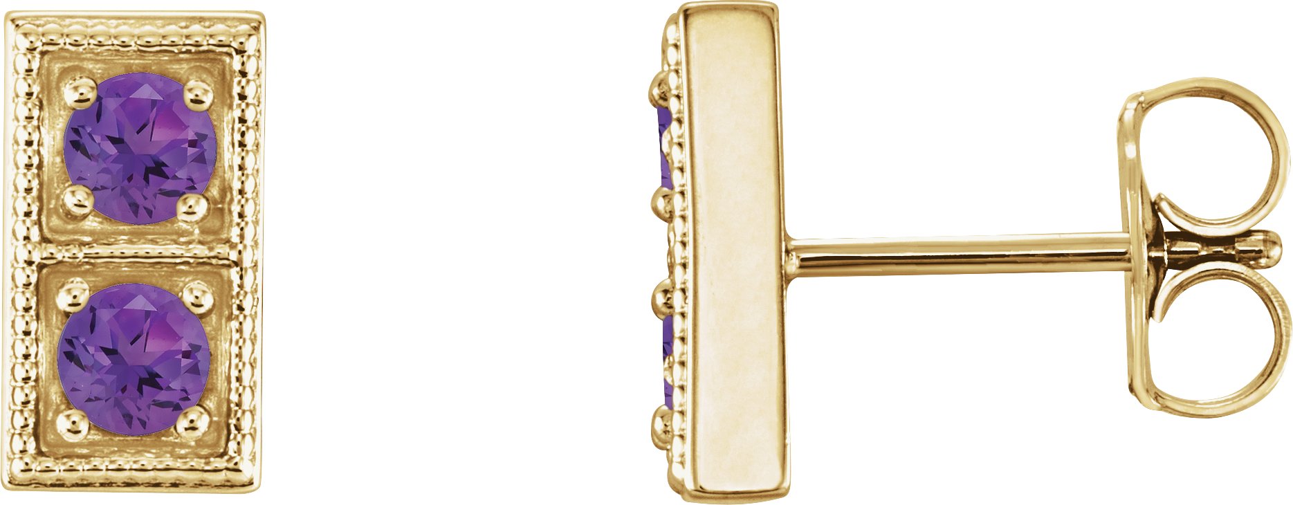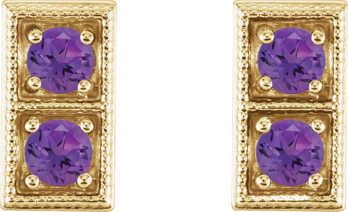 14K Yellow Amethyst Two Stone Earrings