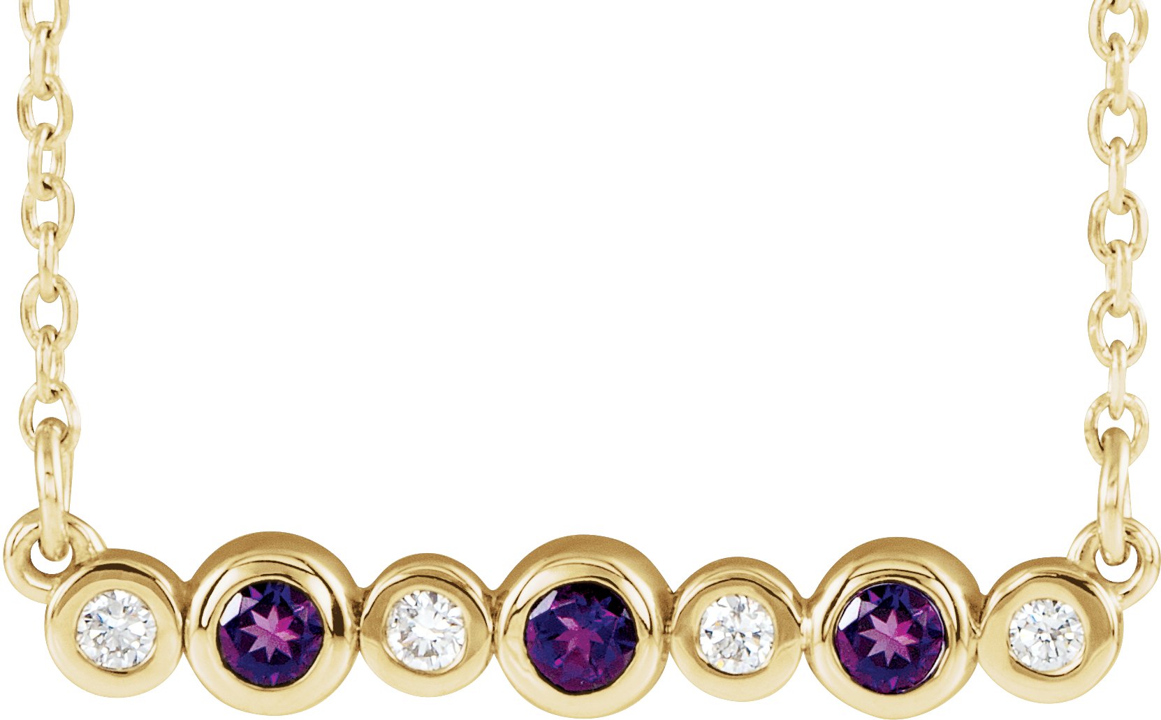 14K Yellow Amethyst & .08 CTW Diamond Bezel Set Bar 16 18" Necklace Ref. 14204897