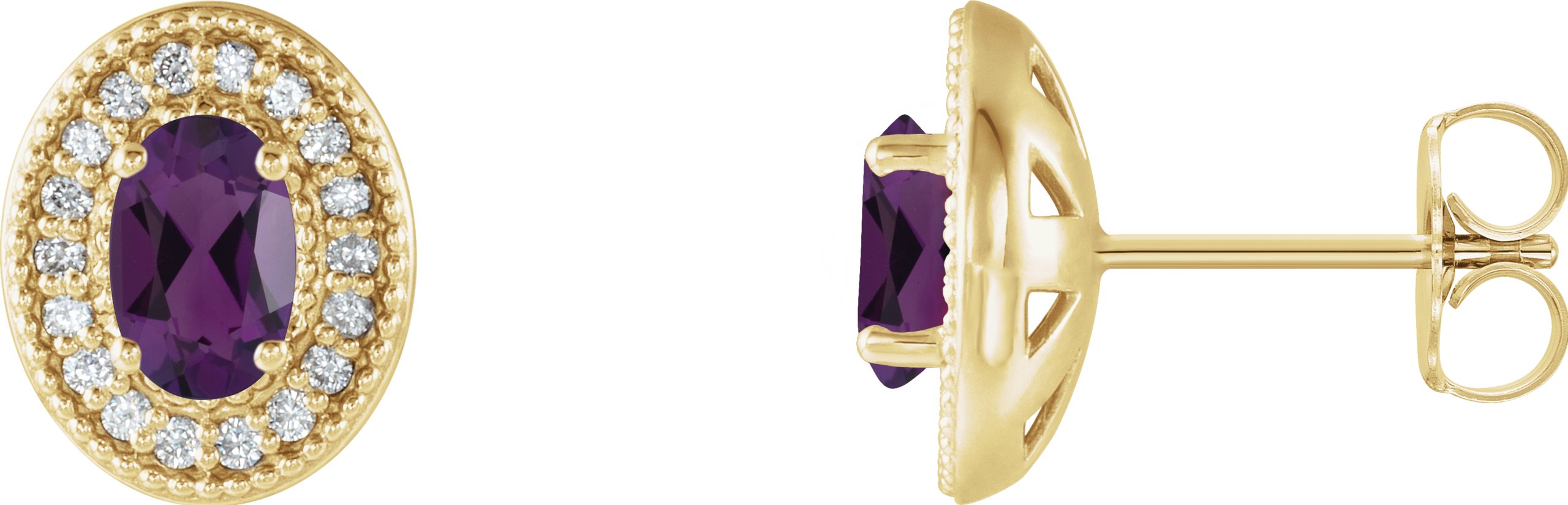 14K Yellow Amethyst & 1/5 CTW Diamond Halo Style Earrings