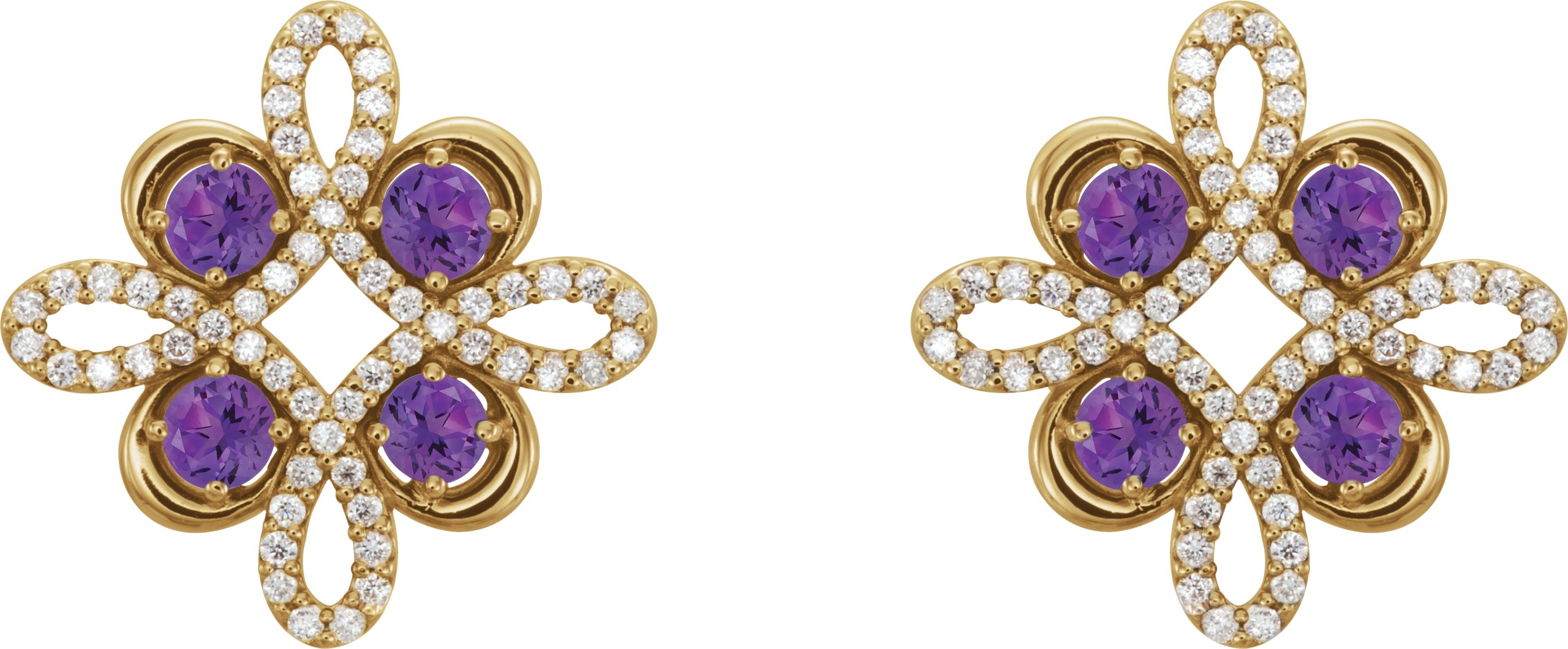 14K Yellow Amethyst and .25 CTW Diamond Earrings