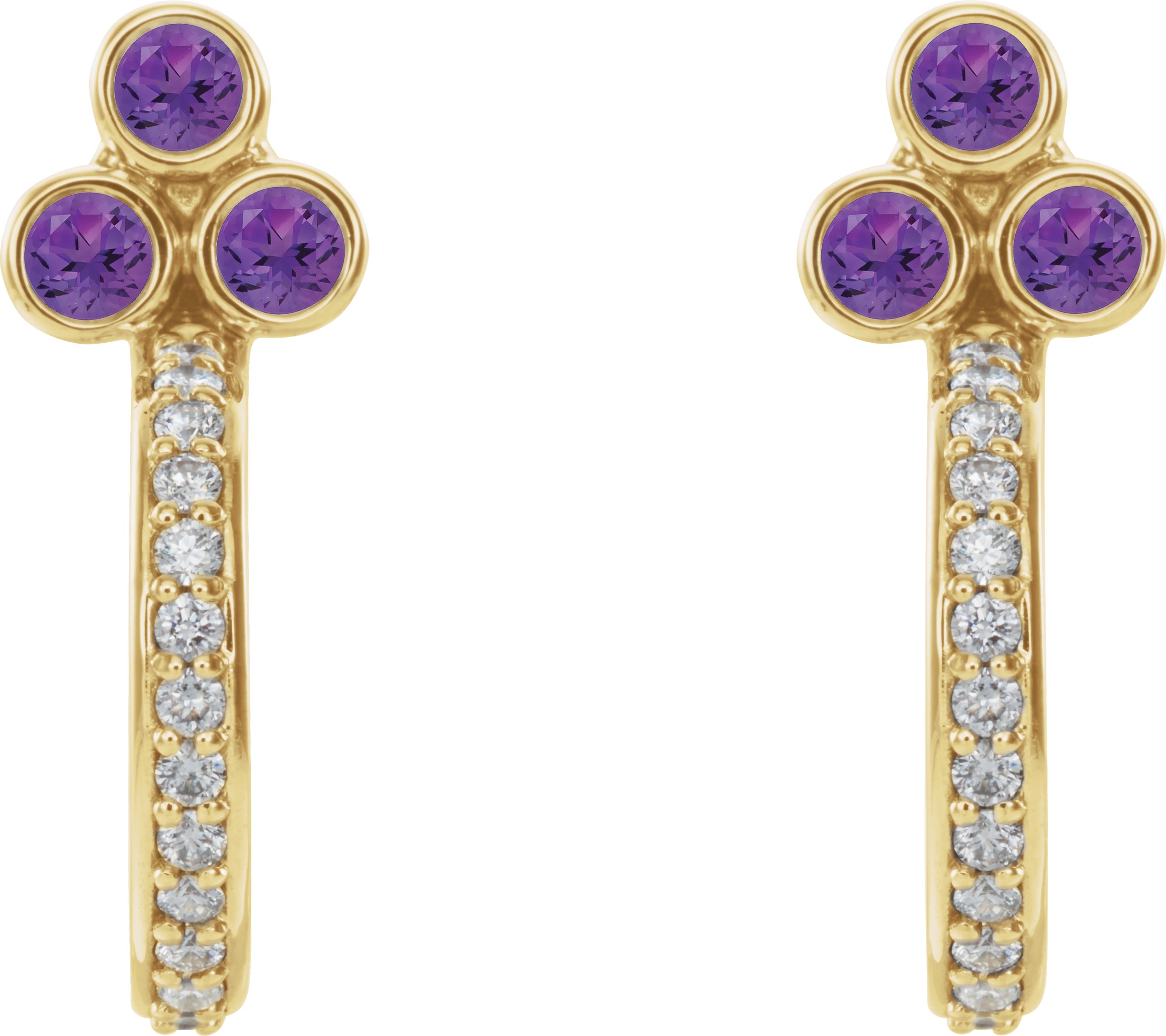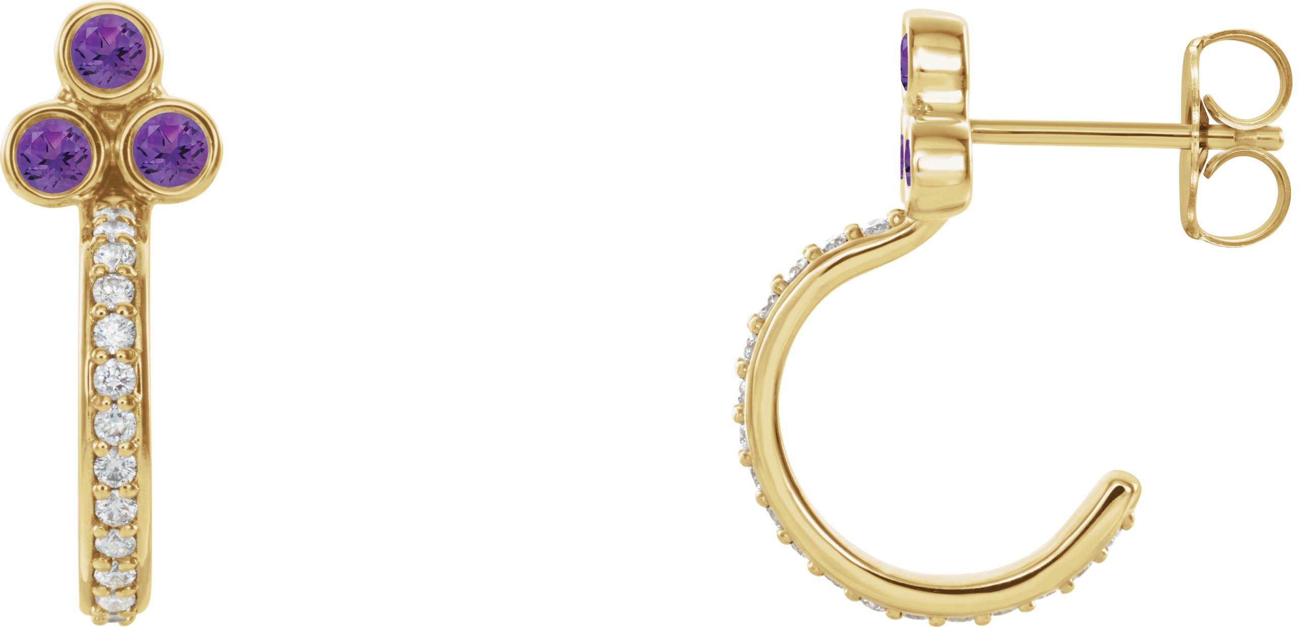 14K Yellow Amethyst & 1/4 CTW Diamond J Hoop Earrings