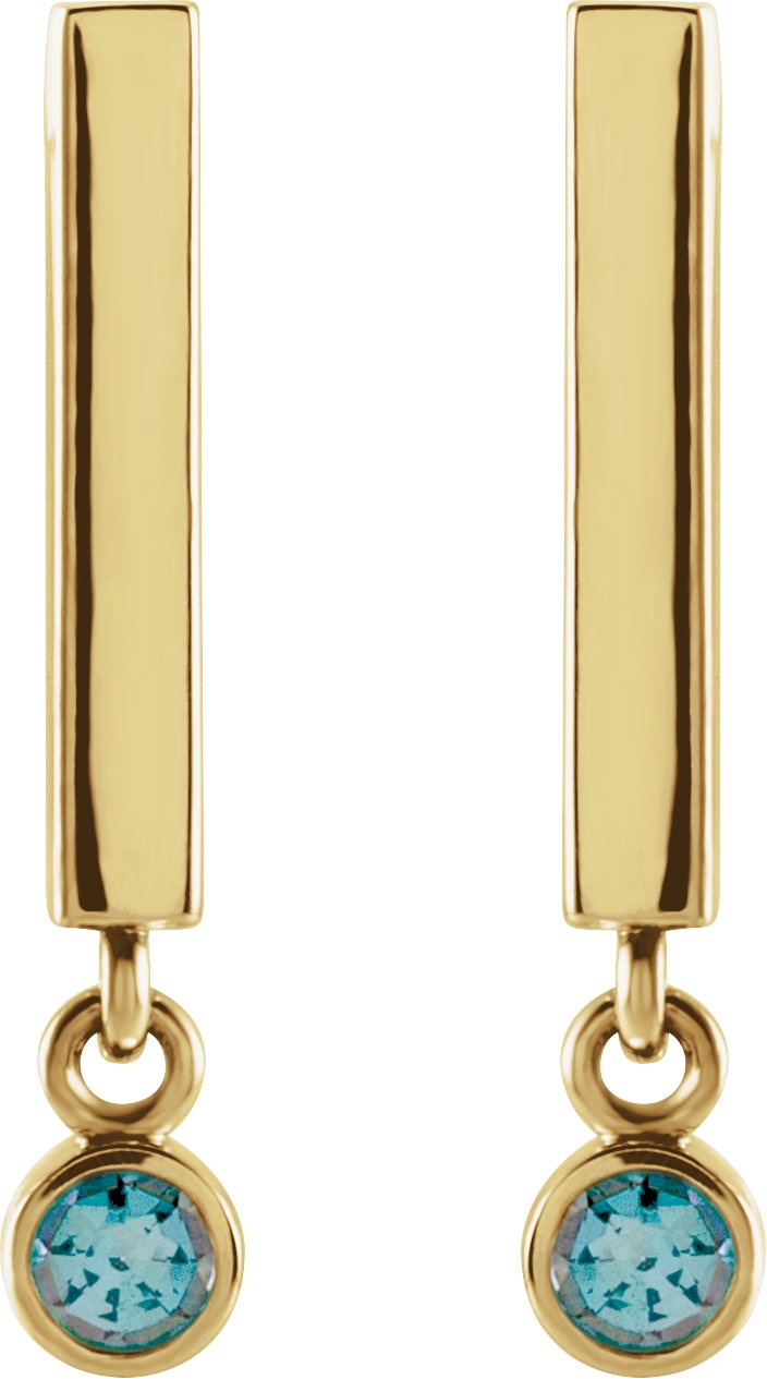 14K Yellow Aquamarine Bar Earrings