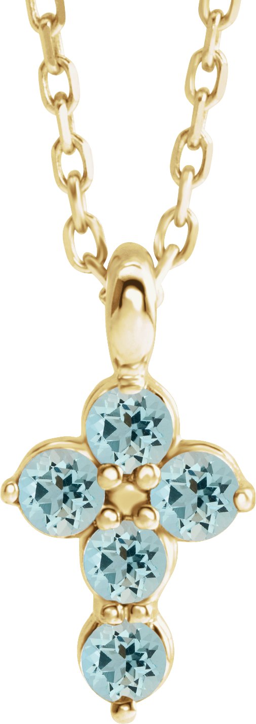 14K Yellow Aquamarine Cross 16 18" Necklace Ref. 13687439