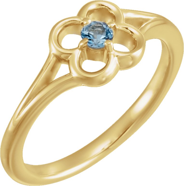 14K Yellow Aquamarine Flower Youth Ring