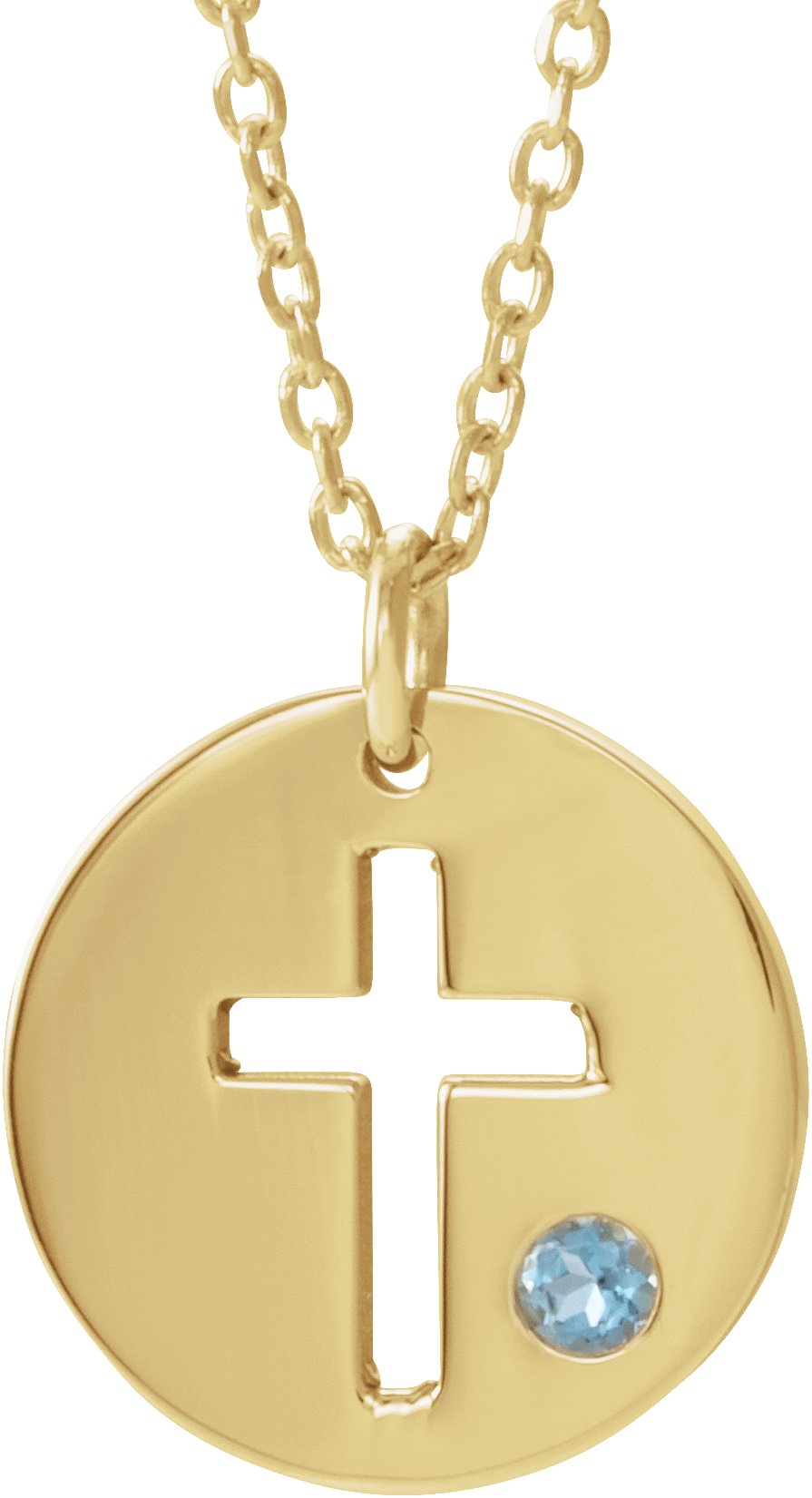 14K Yellow Aquamarine Pierced Cross Disc 16 18" Necklace Ref. 13377626
