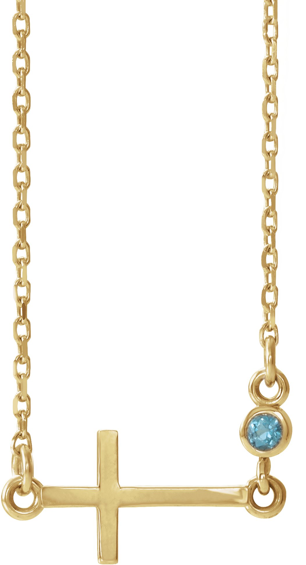 14K Yellow Aquamarine Sideways Accented Cross 16 18" Necklace Ref. 13269682