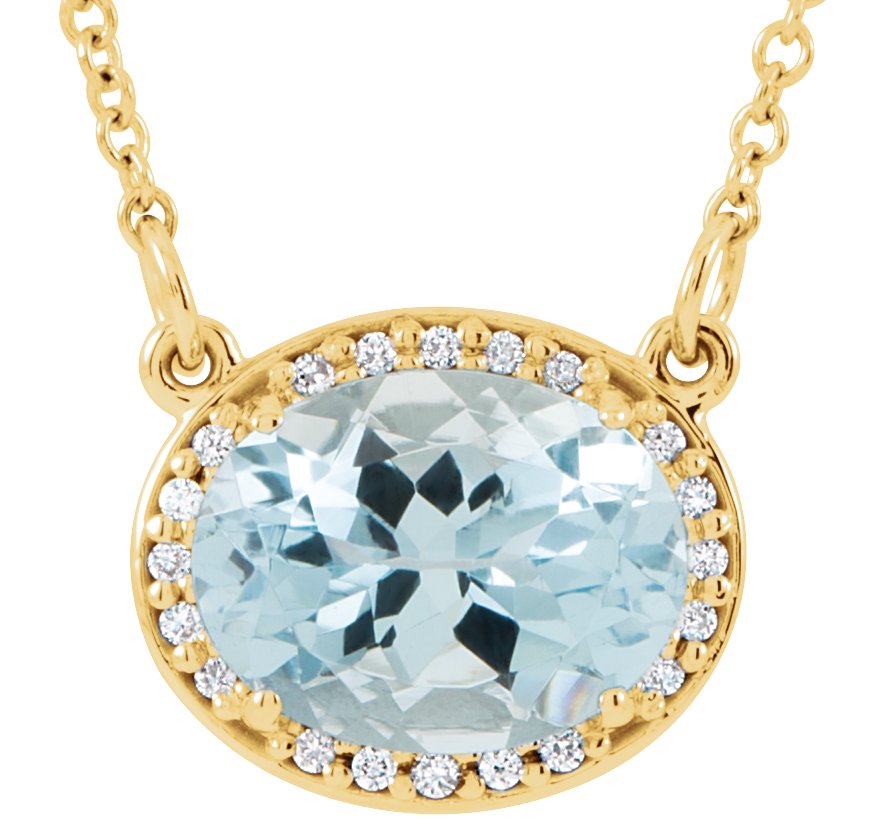 14K Yellow Aquamarine & .05 CTW Diamond 16.5 inch Necklace