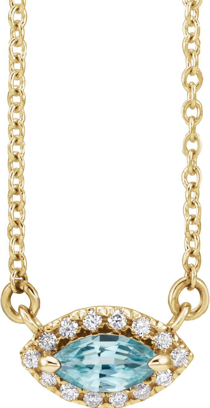 14K Yellow Aquamarine & .06 CTW Diamond 18 inch Necklace
