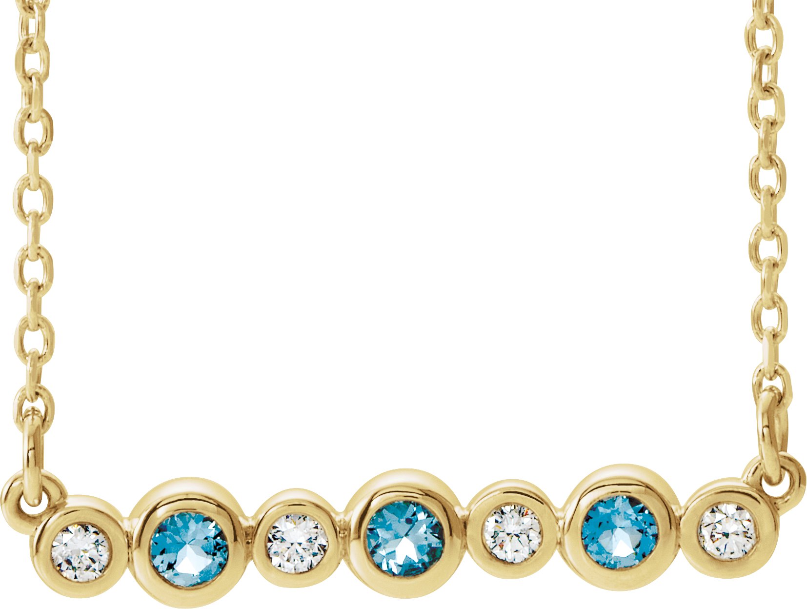 14K Yellow Aquamarine & .08 CTW Diamond Bezel Set Bar 16 18" Necklace Ref. 14204902