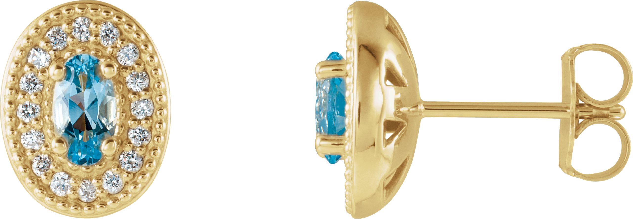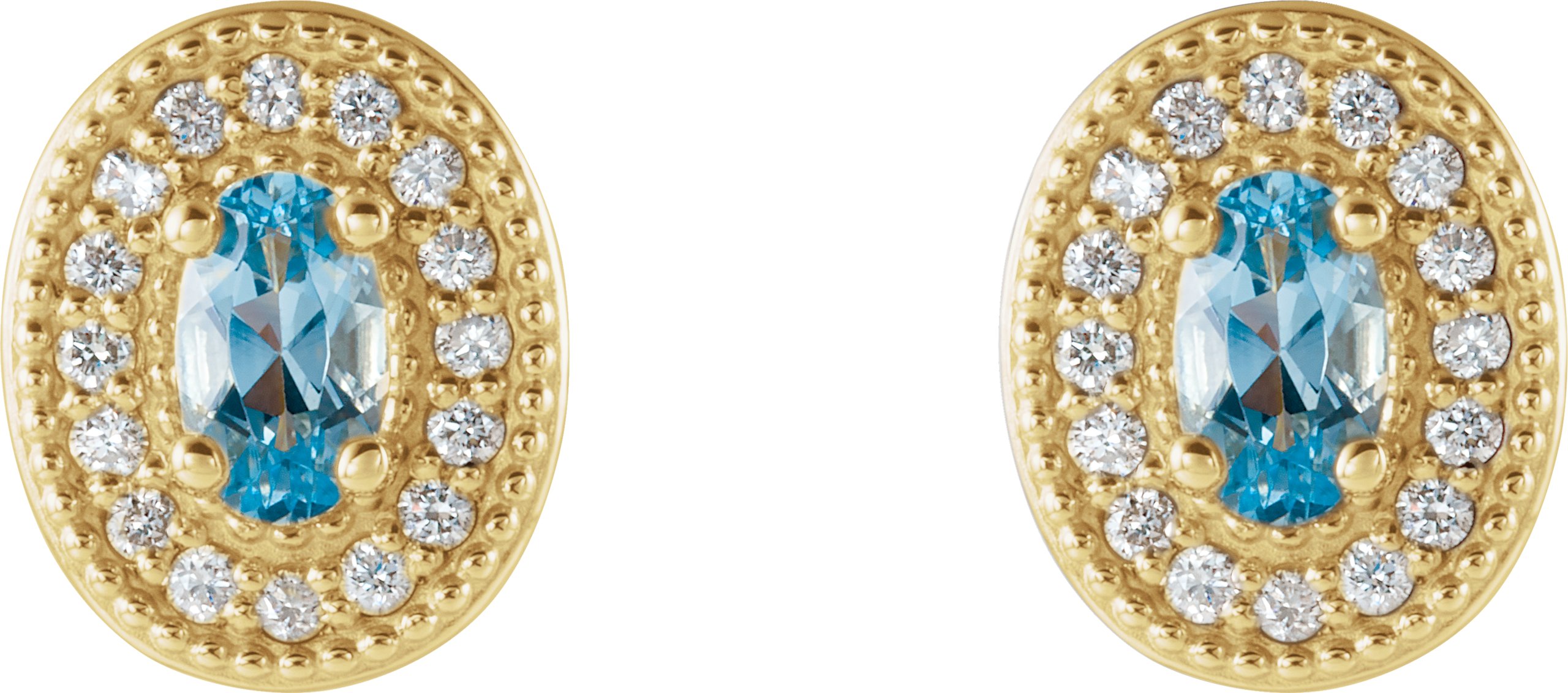 14K Yellow Aquamarine & 1/8 CTW Diamond Halo Style Earrings