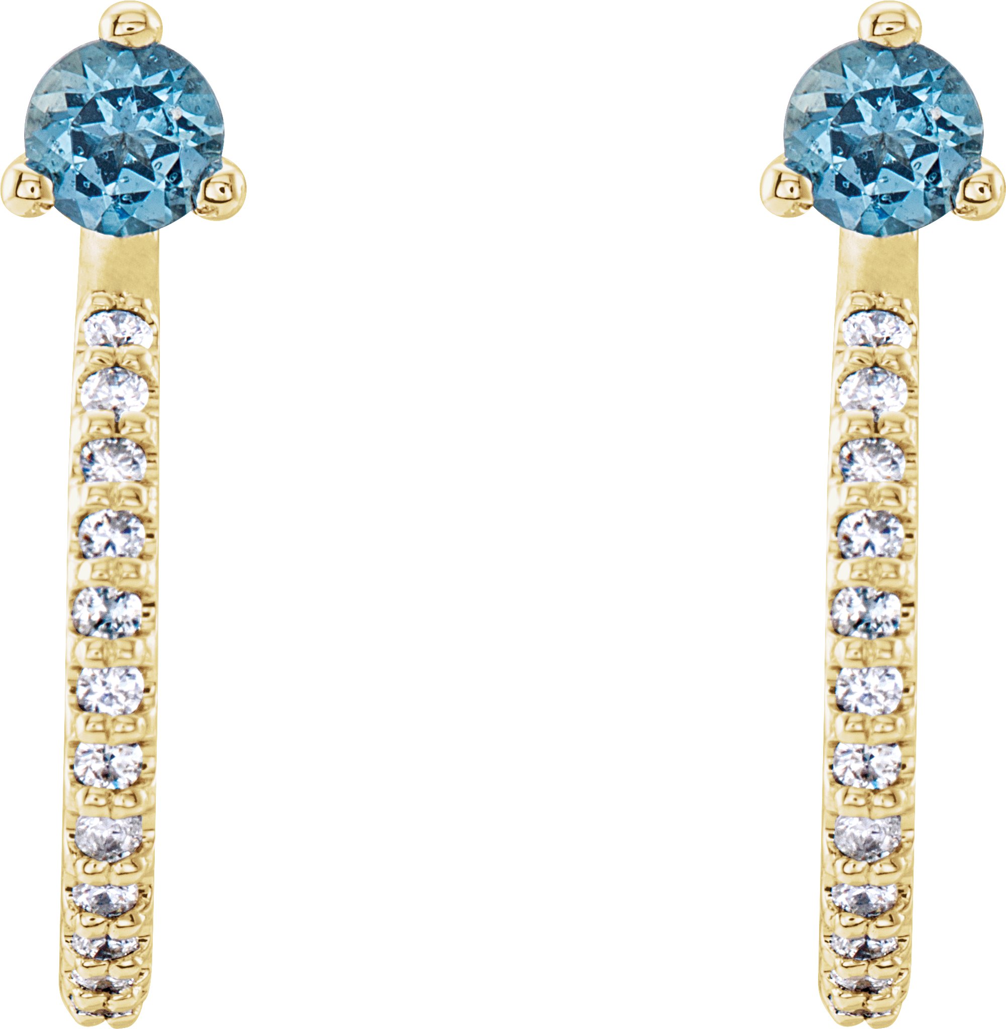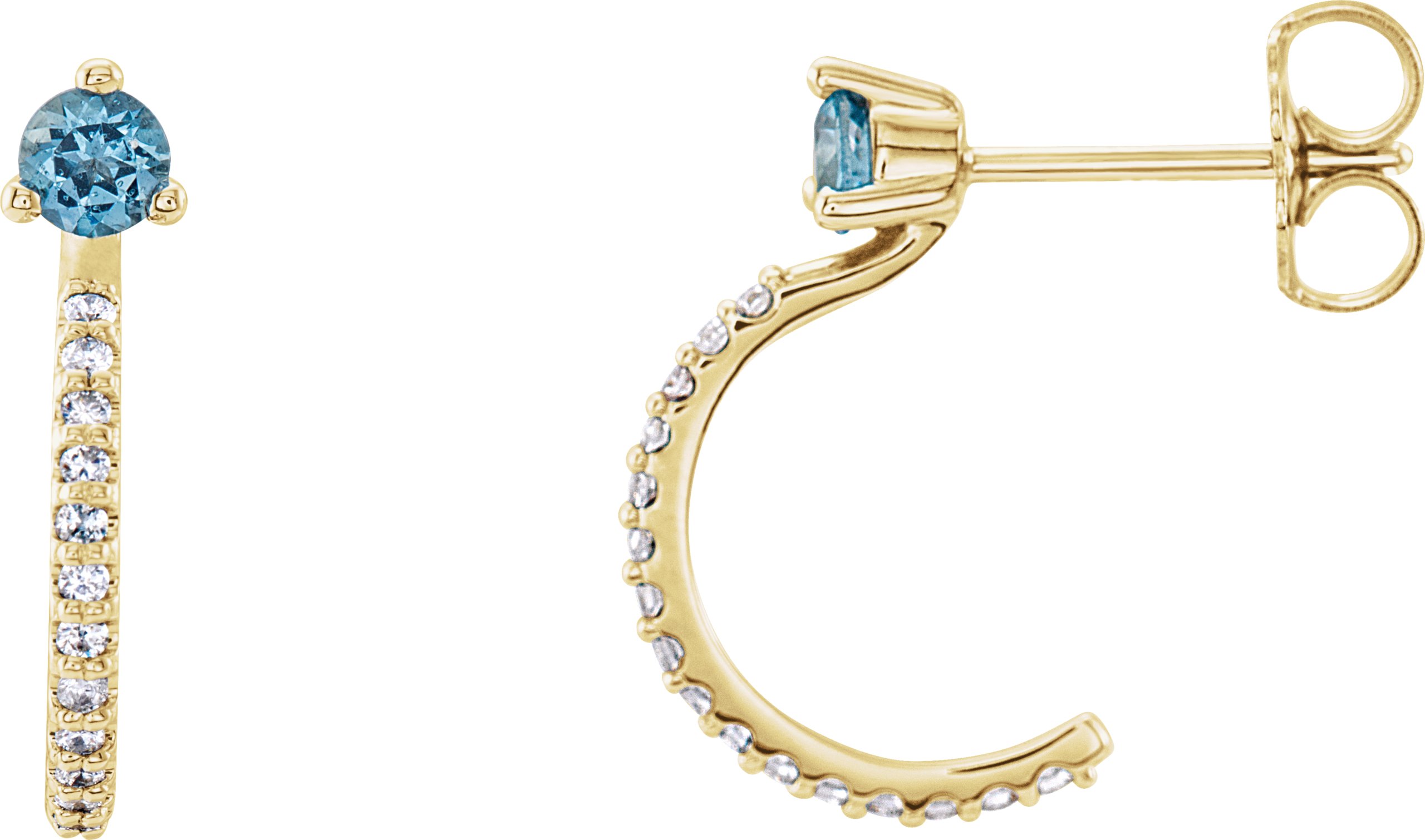 14K Yellow Aquamarine and .17 CTW Diamond Hoop Earrings