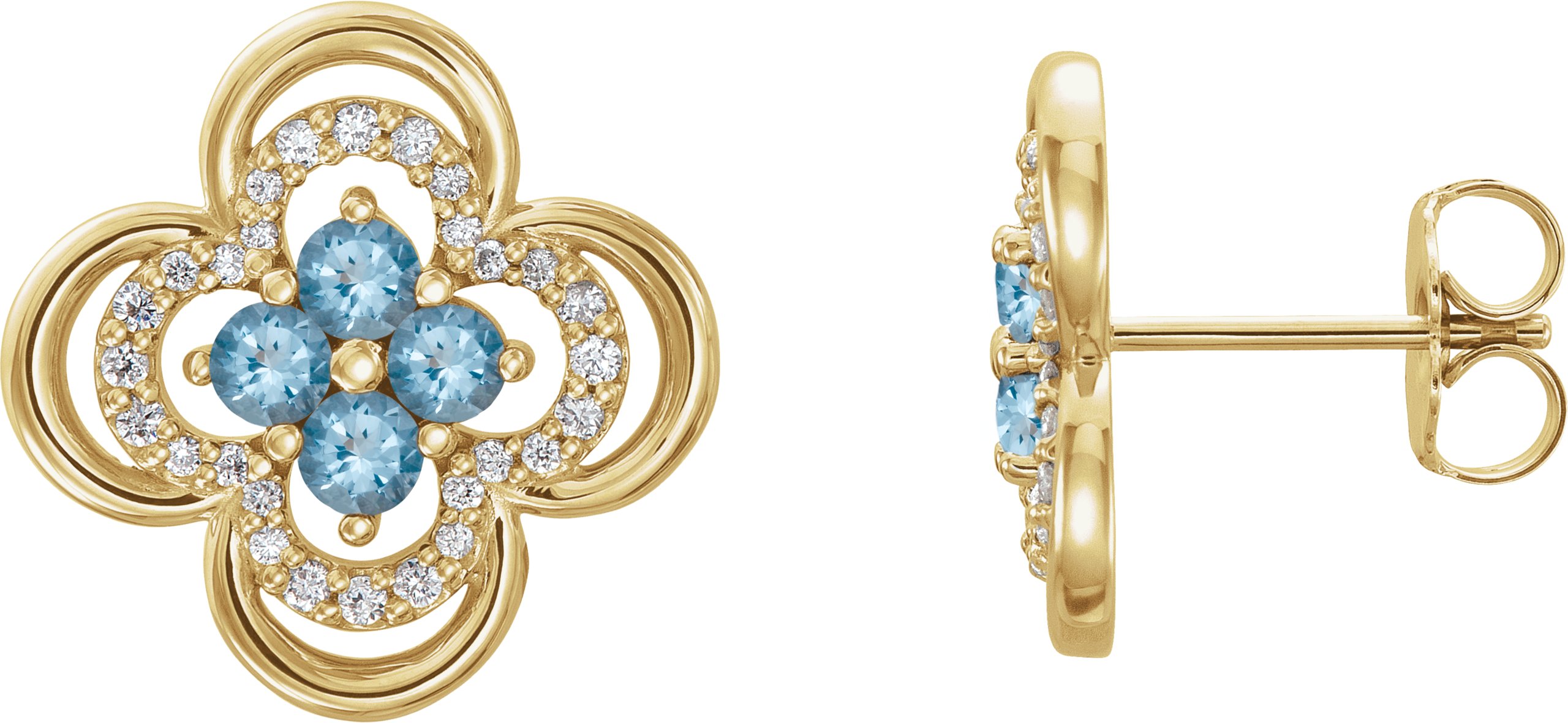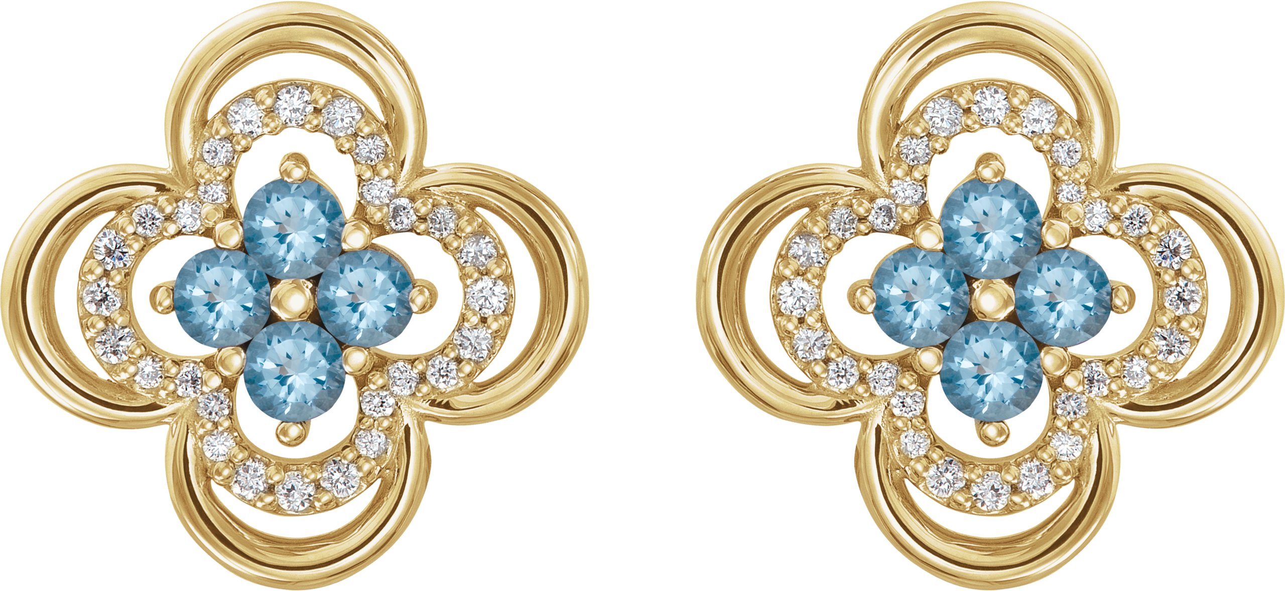 14K Yellow Aquamarine & 1/5 CTW Diamond Clover Earrings