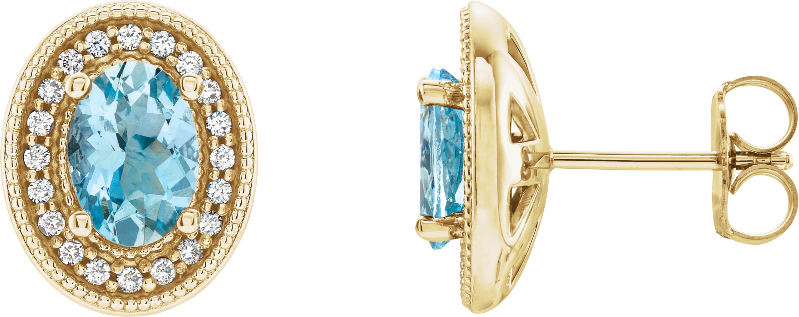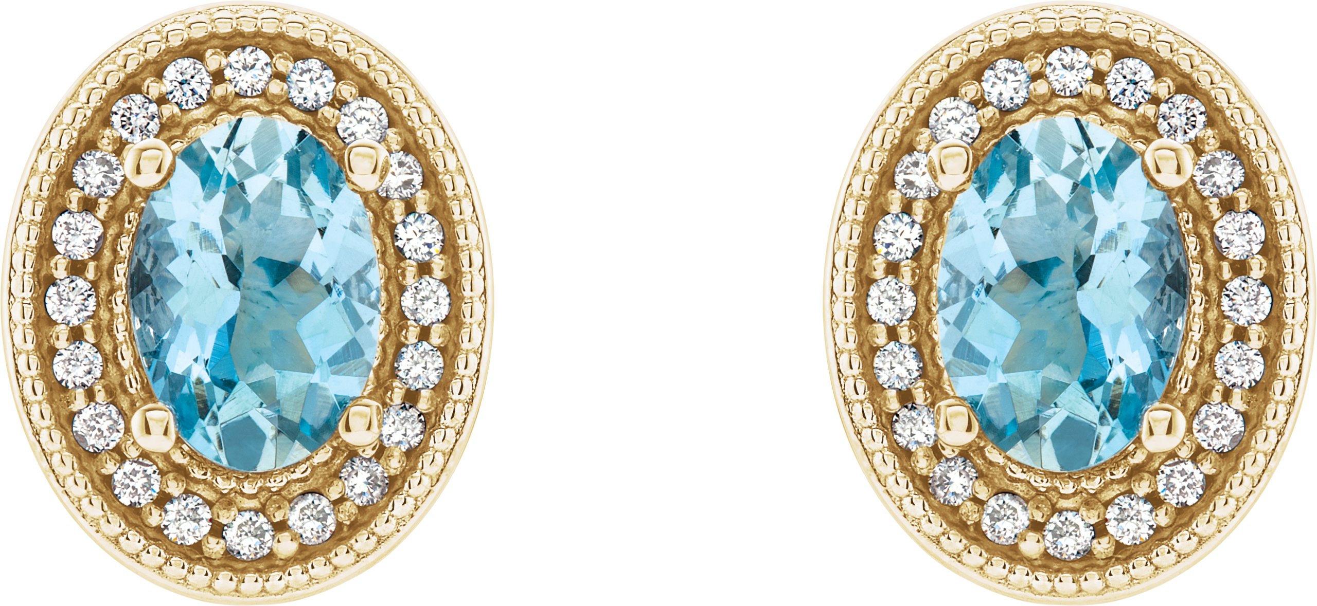 14K Yellow Aquamarine & 1/5 CTW Diamond Halo Style Earrings