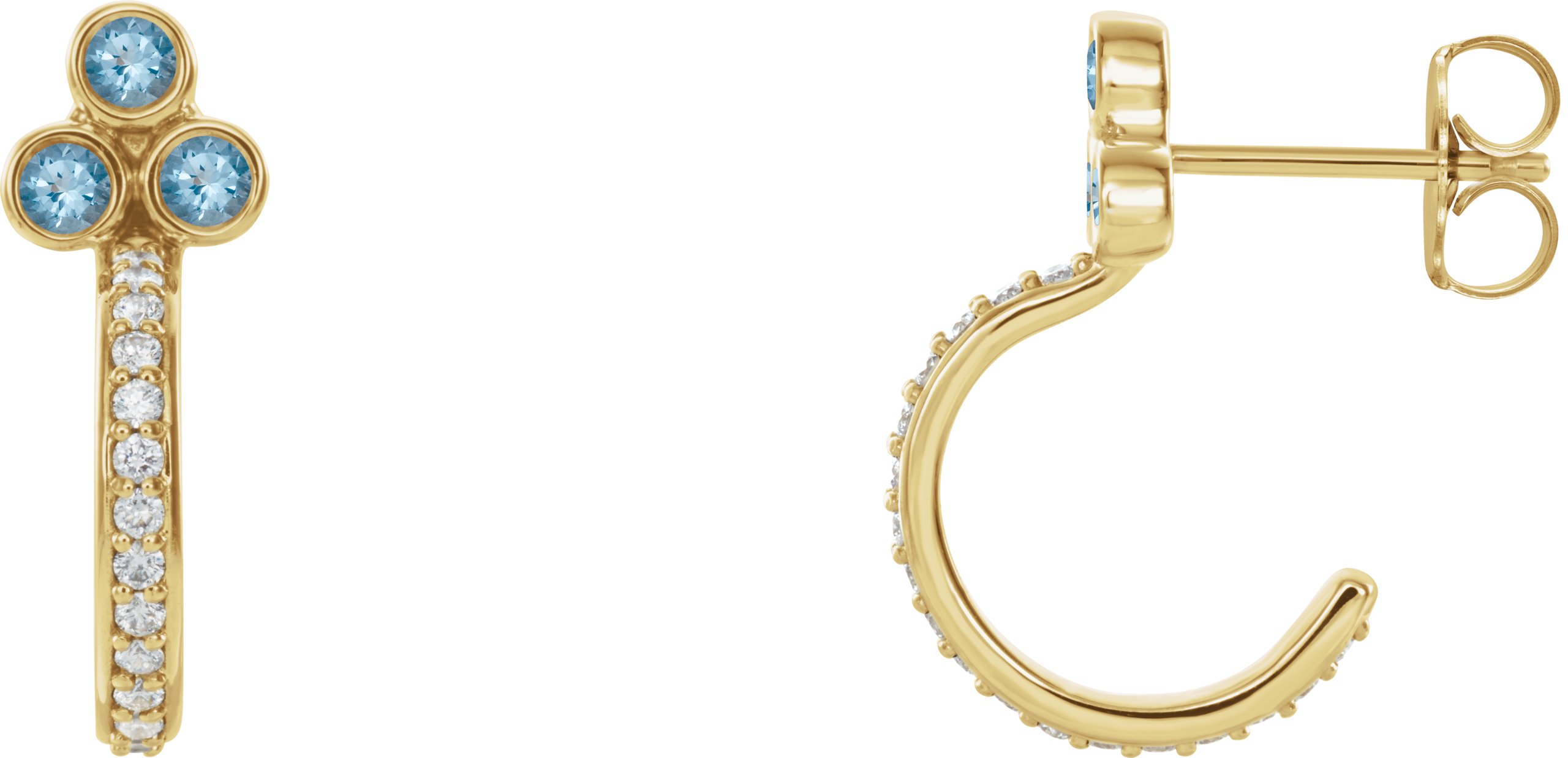 14K Yellow Aquamarine & 1/4 CTW Diamond J Hoop Earrings