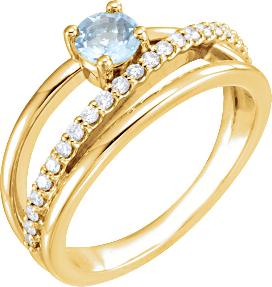 14K Yellow Aquamarine & 1/4 CTW Diamond Ring