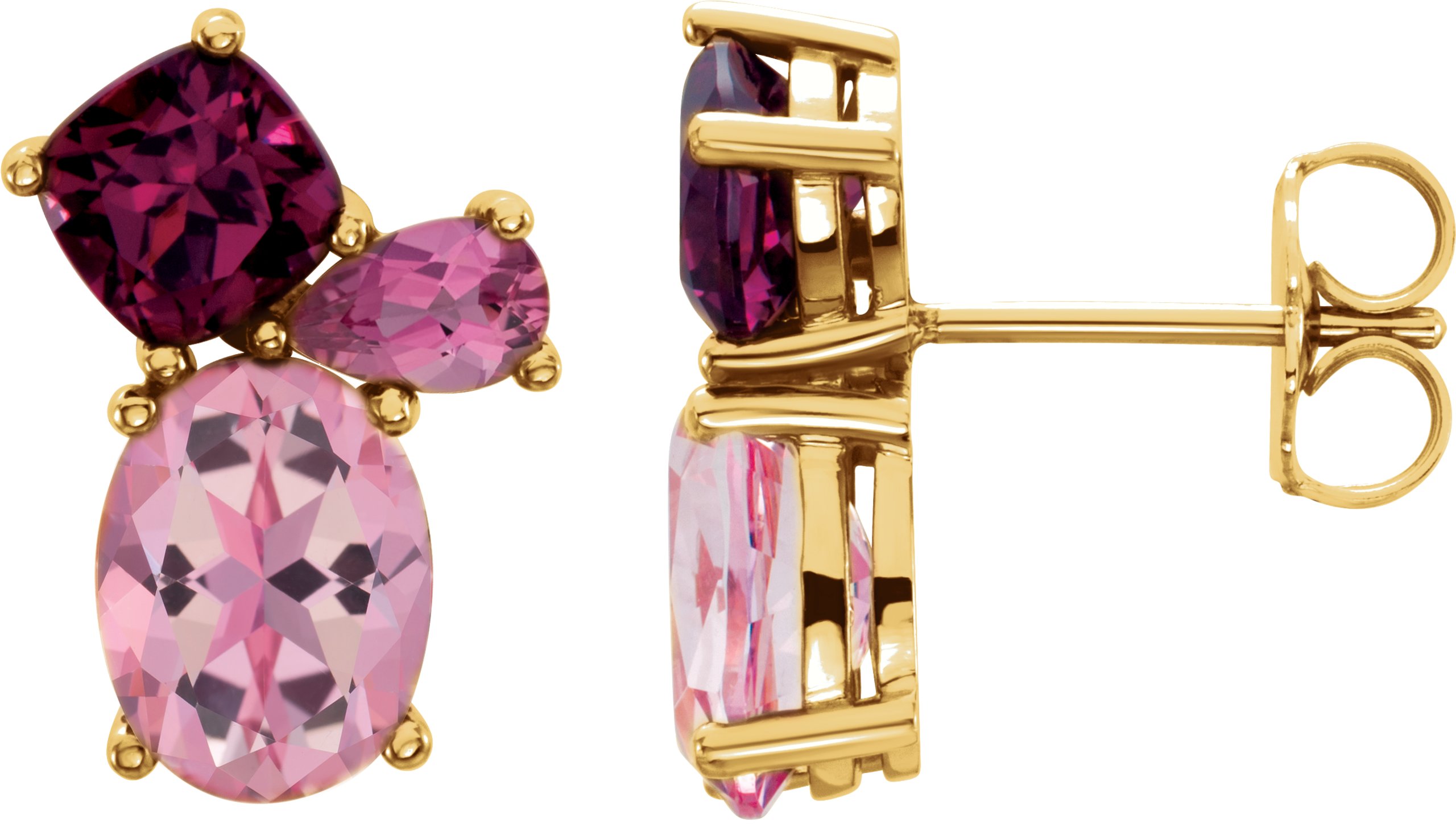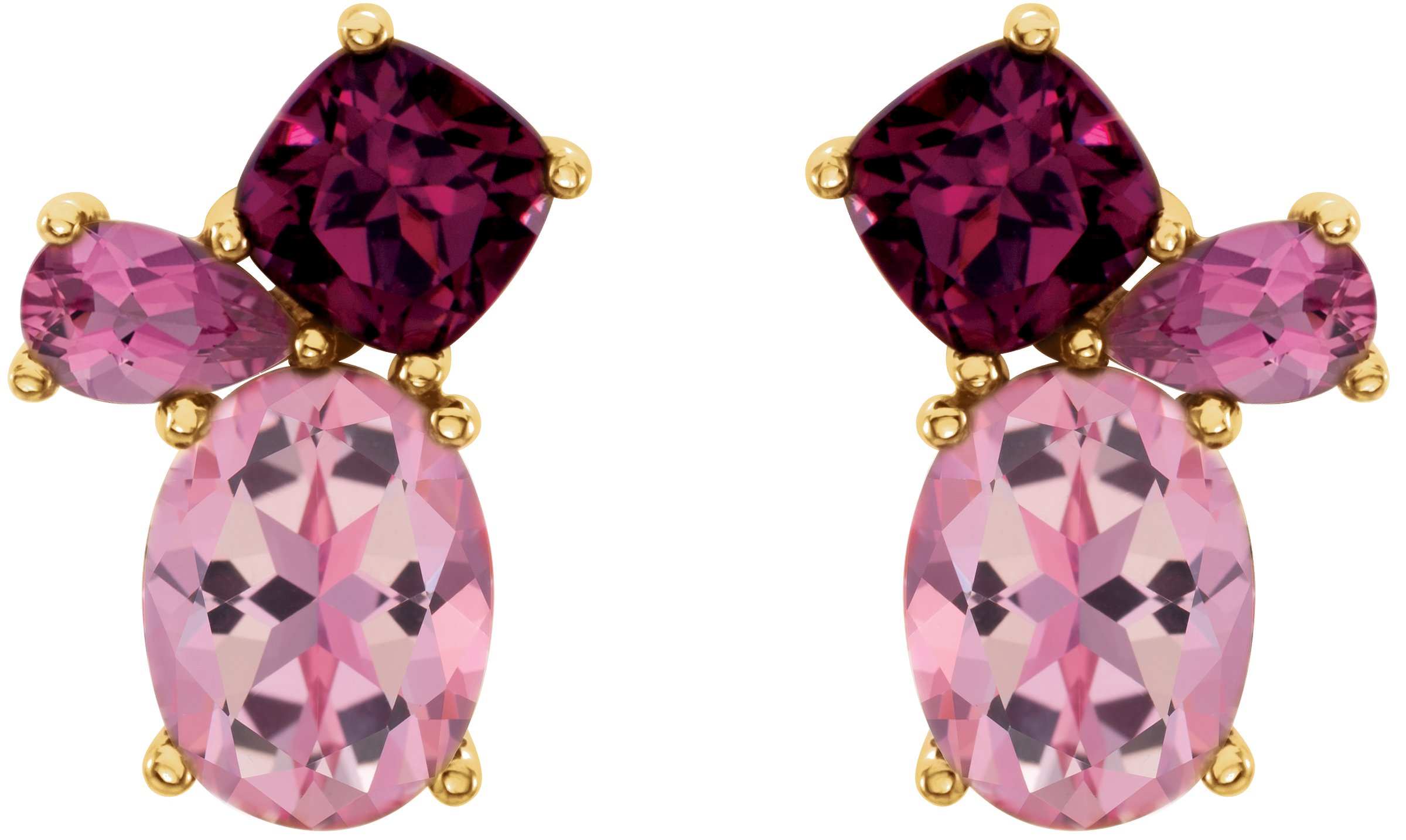 14K Yellow Baby Pink Topaz, Rhodolite Garnet & Pink Tourmaline Earrings
