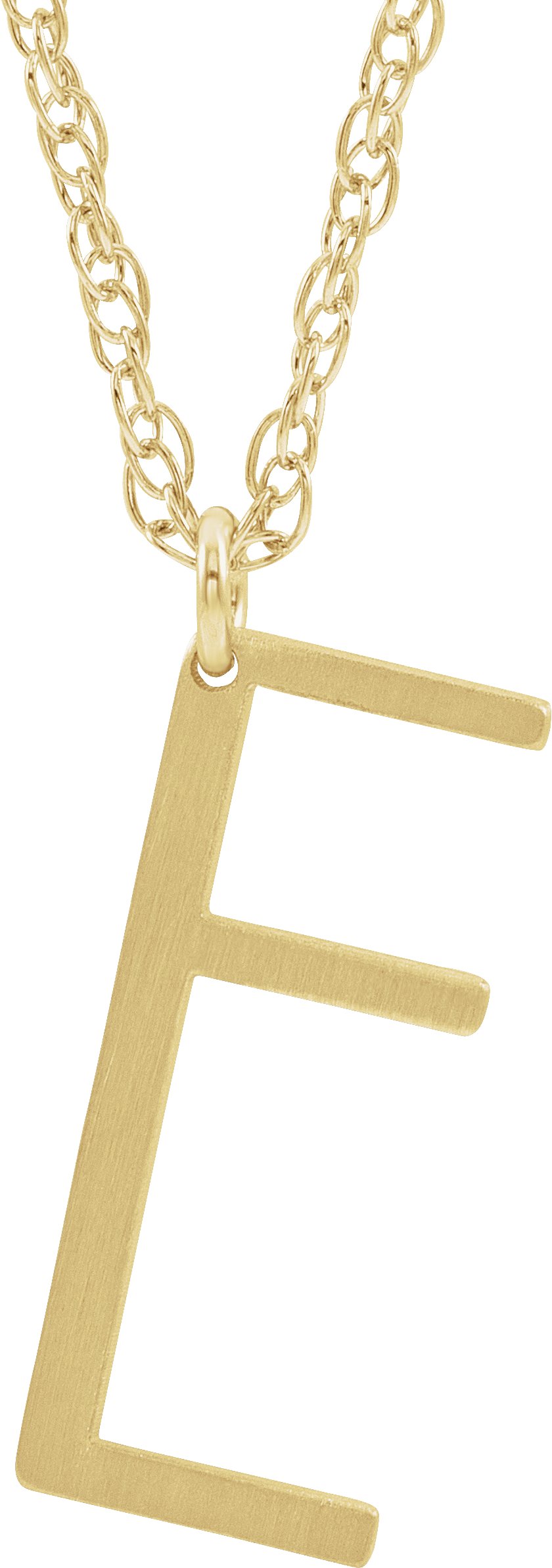 14K Yellow Block Initial E 16 18" Necklace with Brush Finish Ref. 16047388