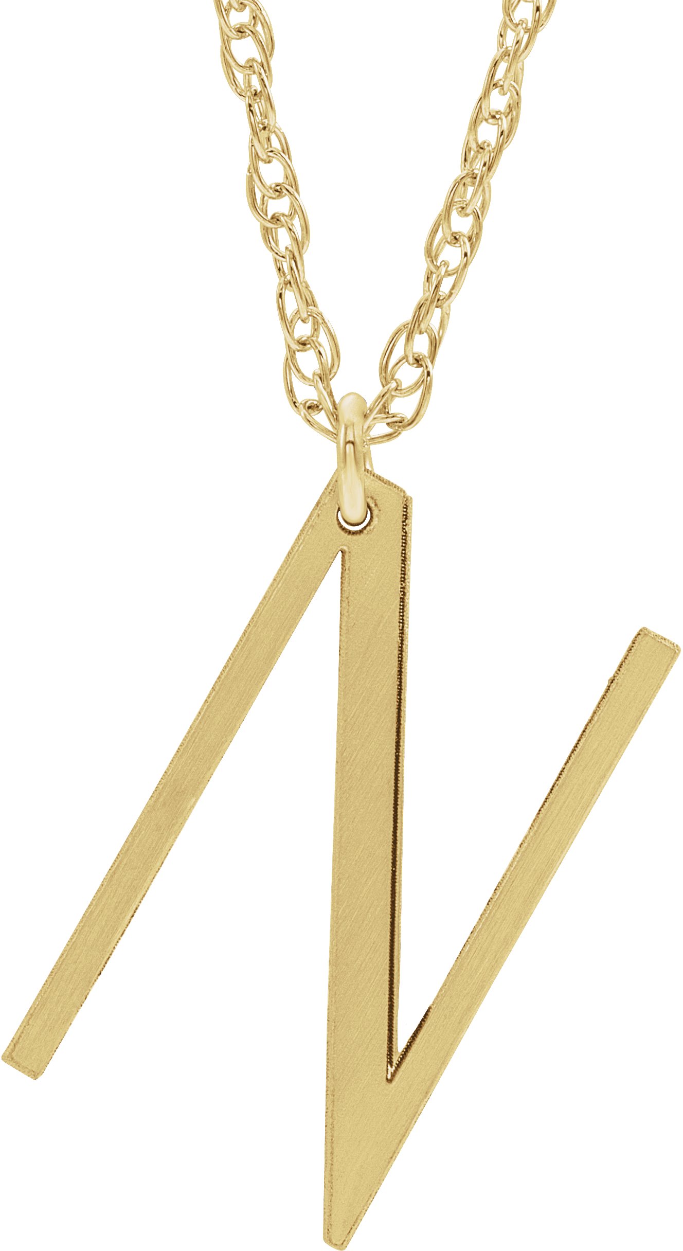14K Yellow Block Initial N 16 18" Necklace with Brush Finish Ref. 16047241