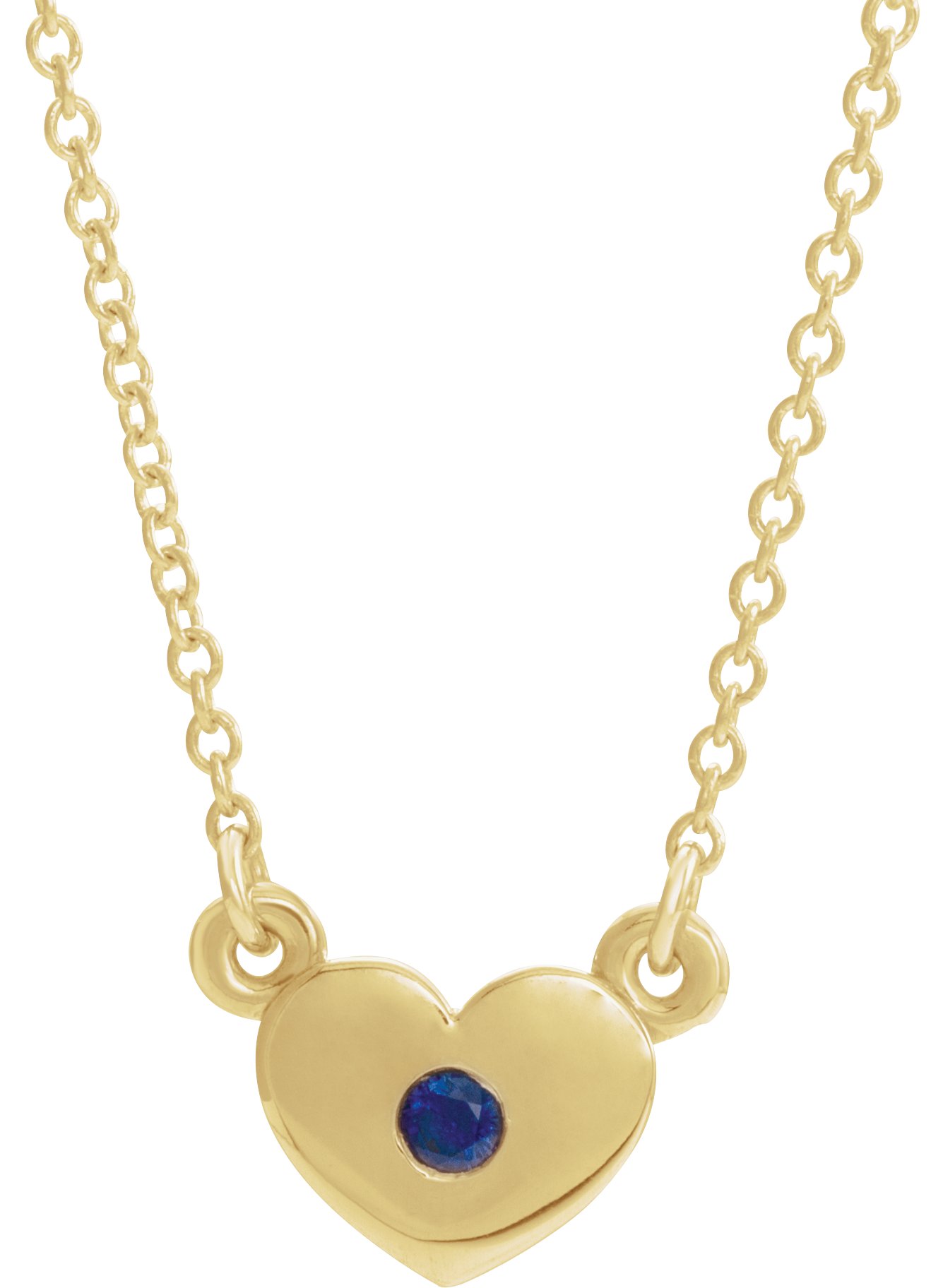 14K Yellow Blue Sapphire Heart 16 inch Necklace