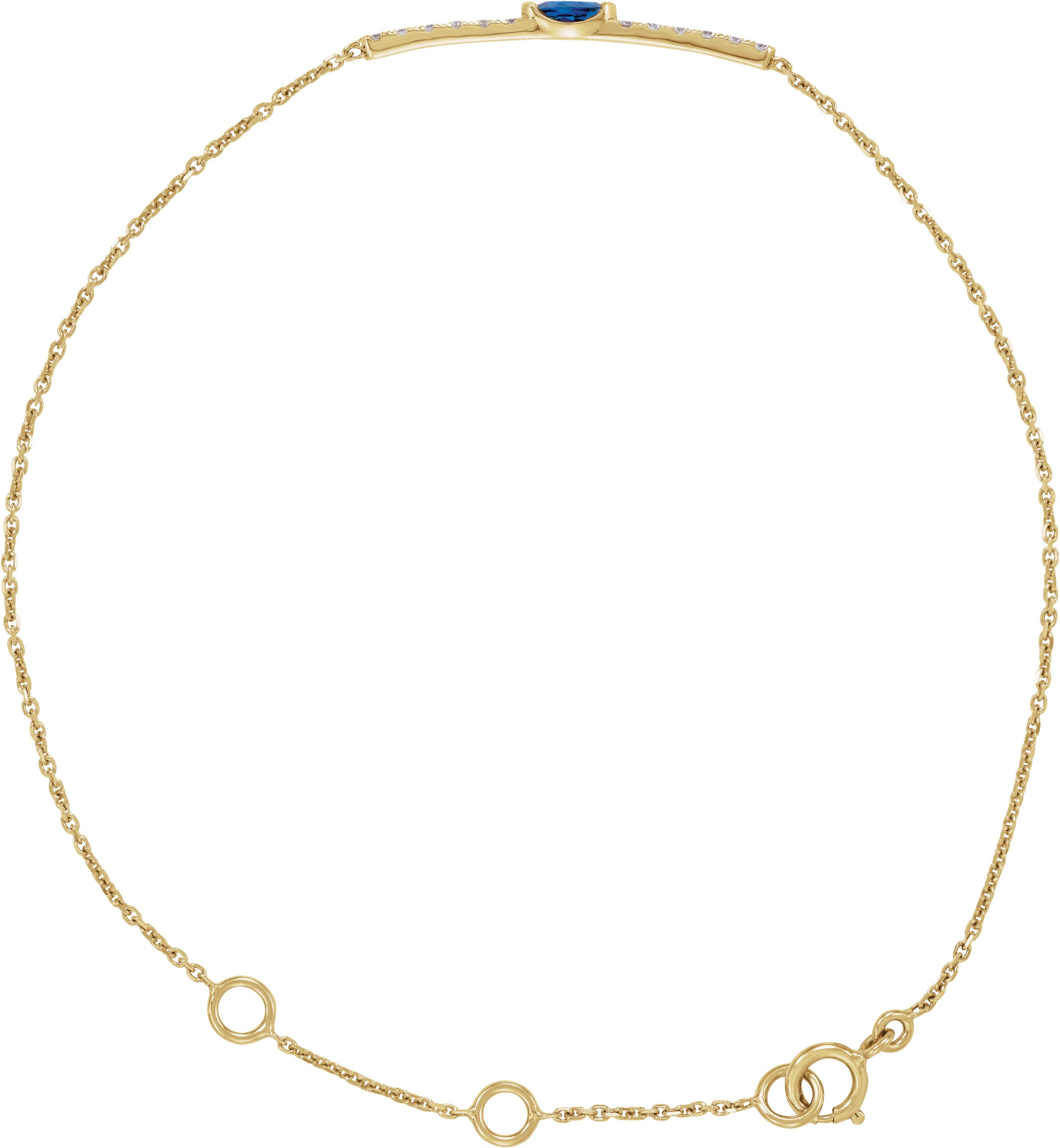 14K Yellow Blue Sapphire & .06 CTW Diamond Bar 5-7" Bracelet