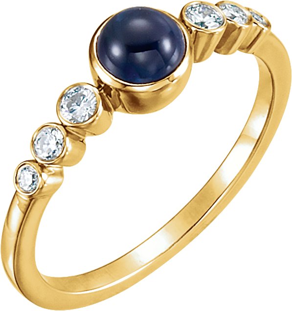 14K Yellow Blue Sapphire & 1/6 CTW Diamond Bezel Set Ring