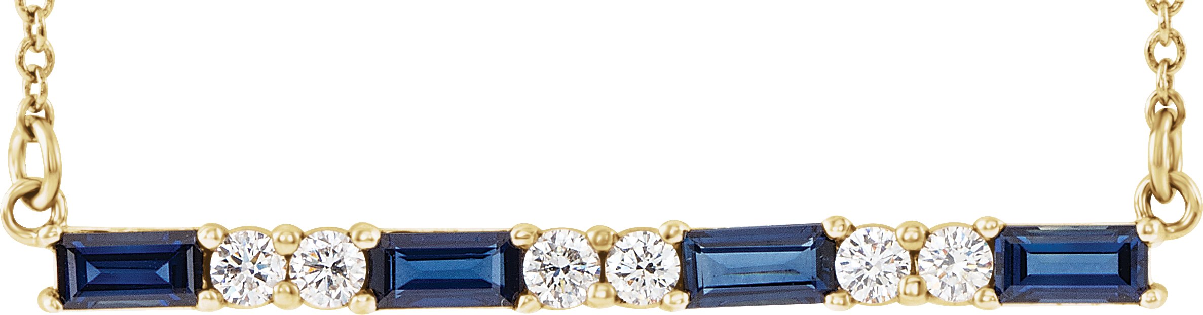 14K Yellow Blue Sapphire & 1/5 CTW Diamond Bar 16 18 inch Necklace