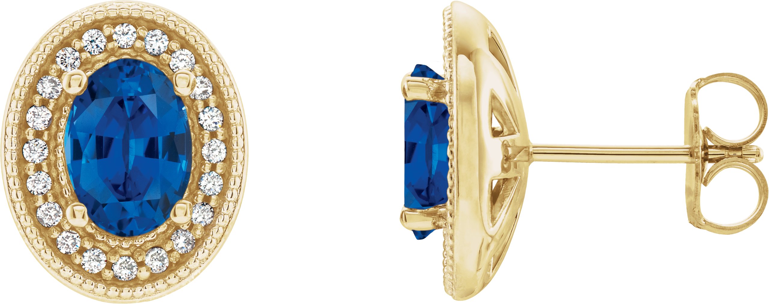 Description: Genuine Sapphire And 1/5 Ctw Diamond Earrings With Backs
